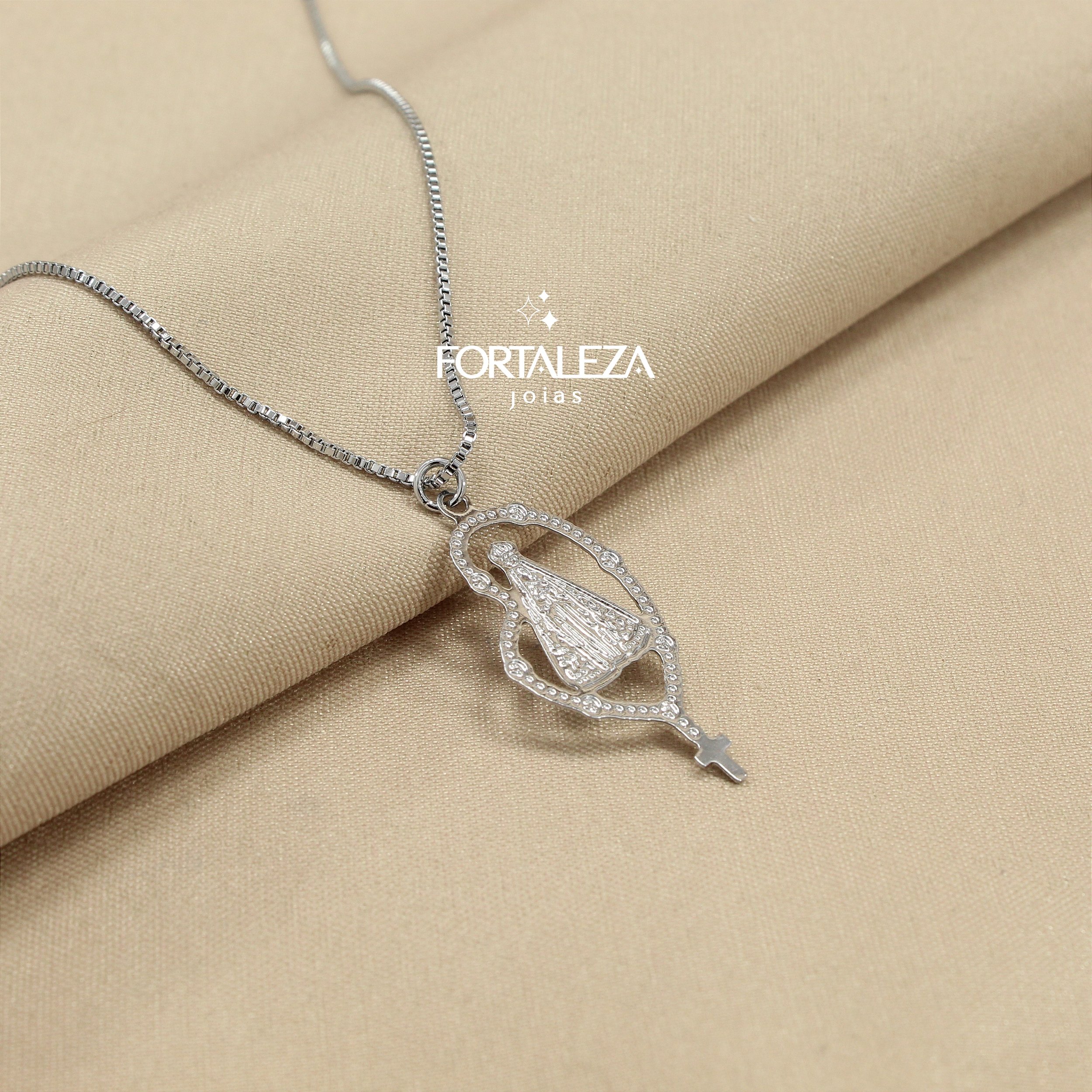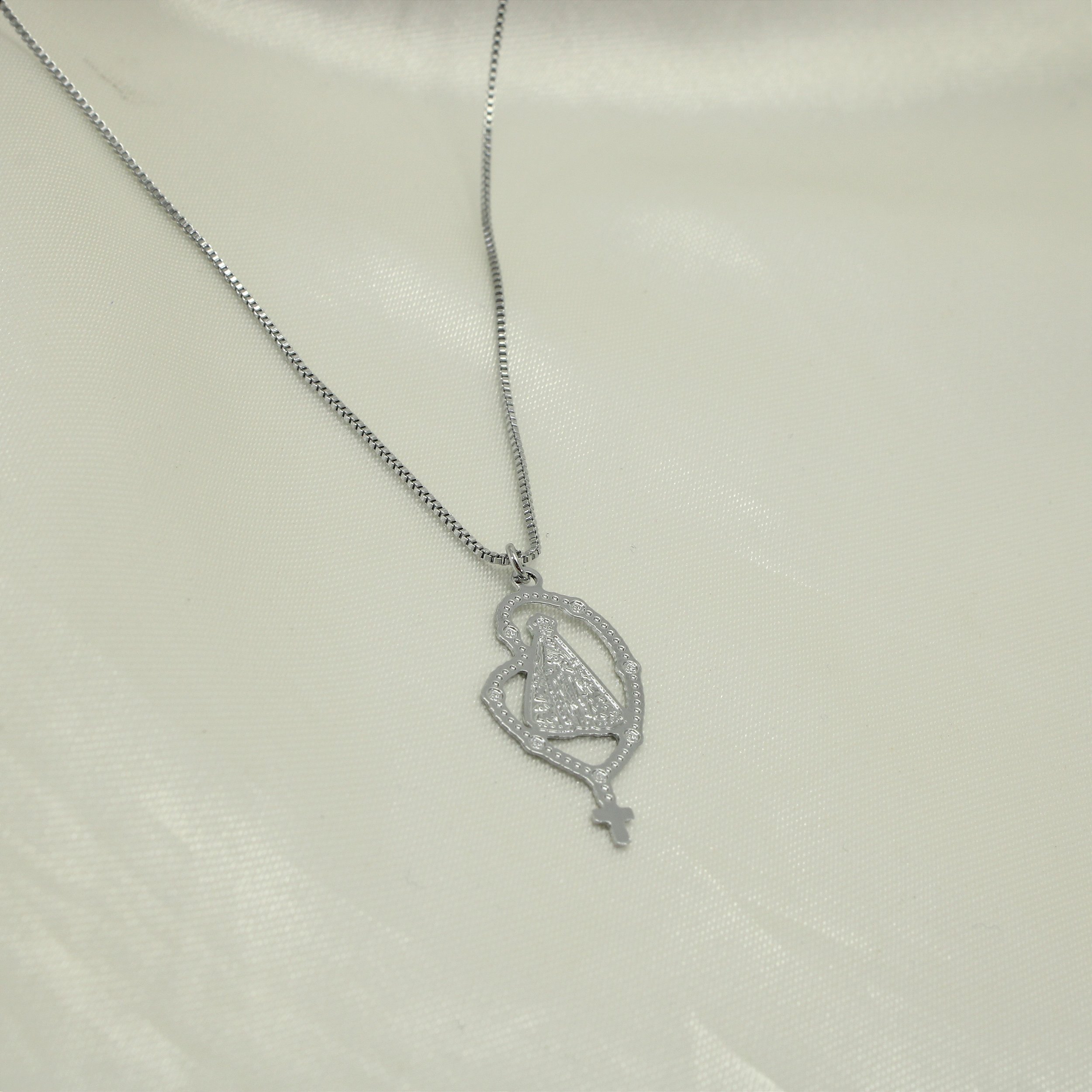 Gargantilha Nossa Senhora Aparecida Banhado a Ouro Branco