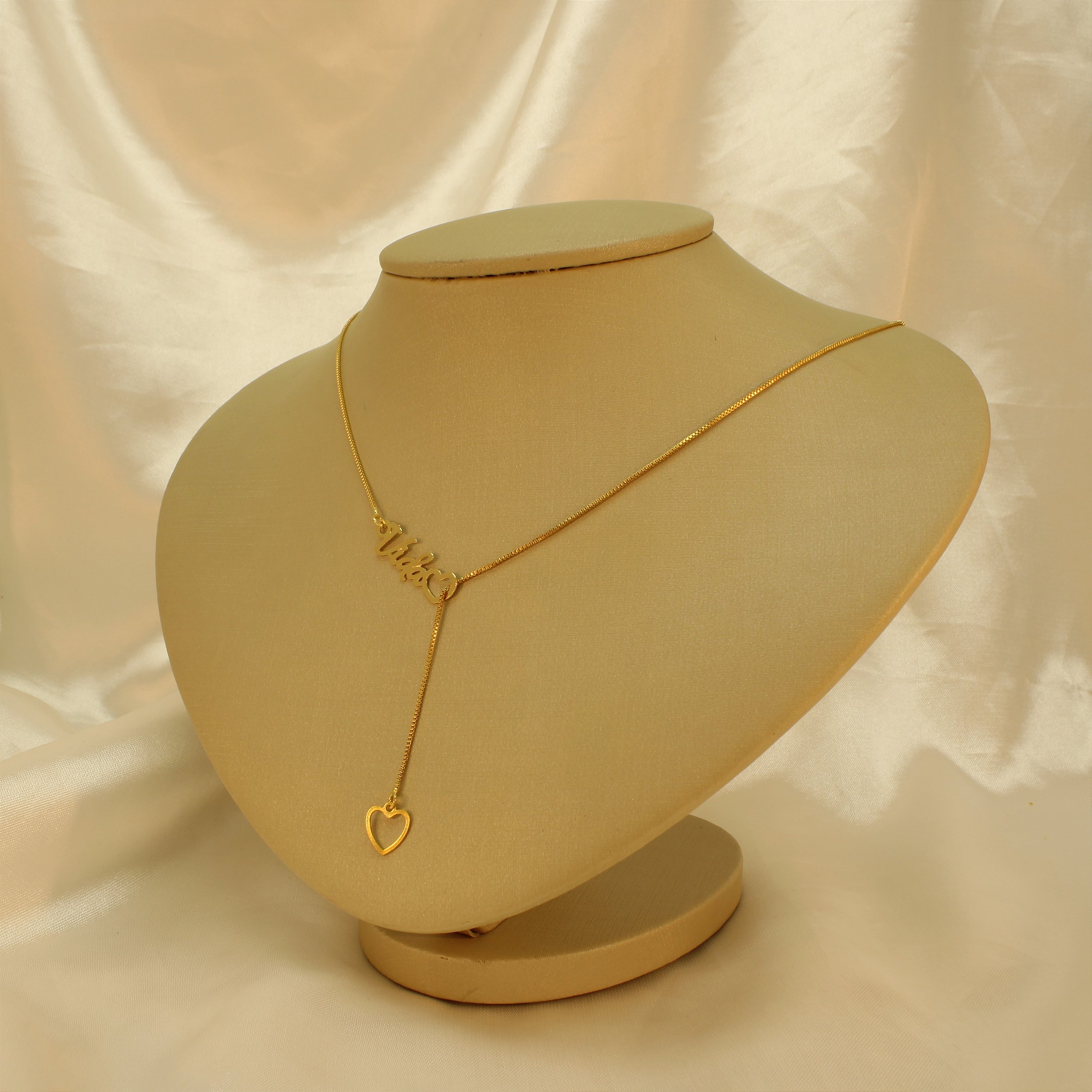 Colar Gravatinha Escrito Vida e Coração Banhado a Ouro 18k