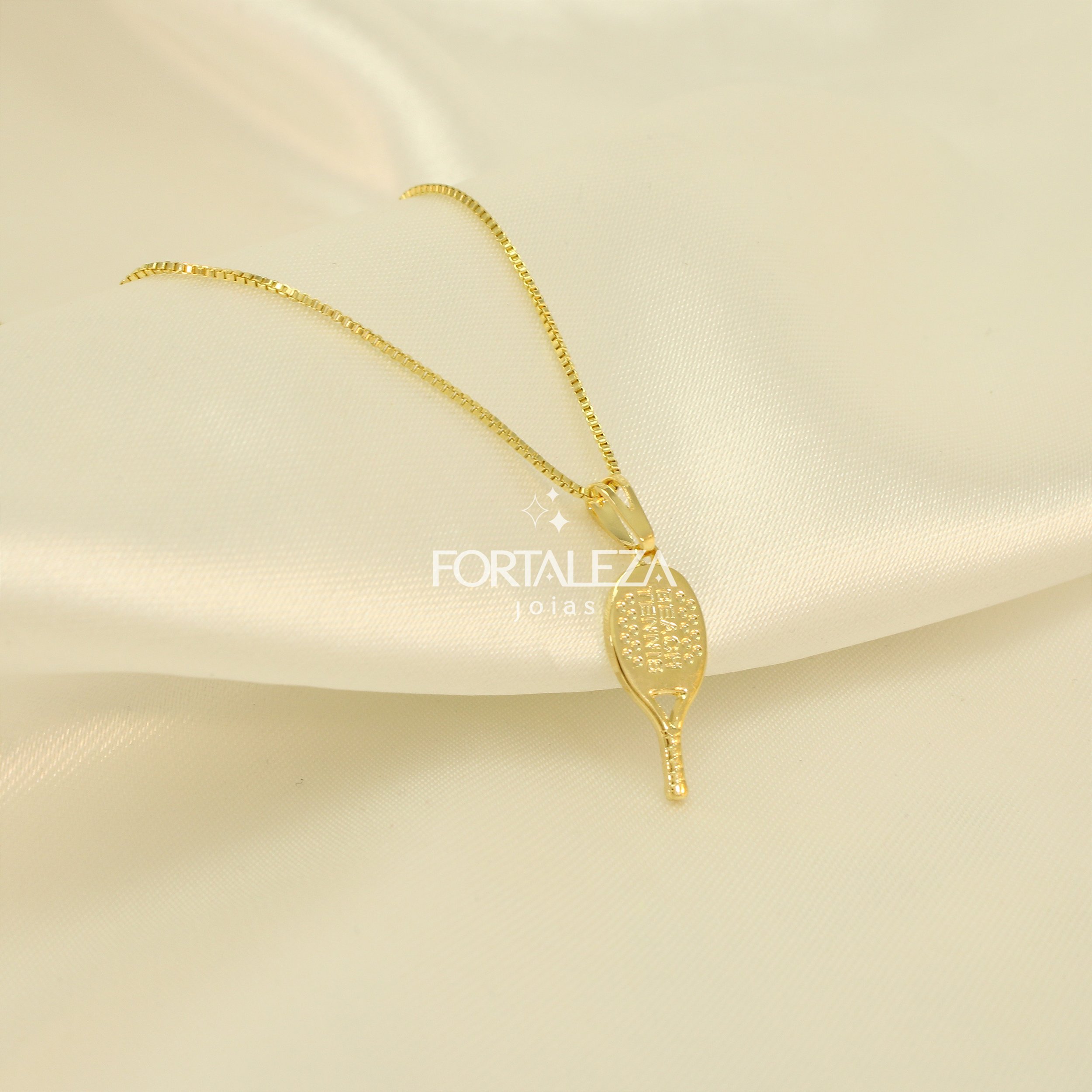 Gargantilha Raquete de Beach Tennis Banhado a Ouro 18k