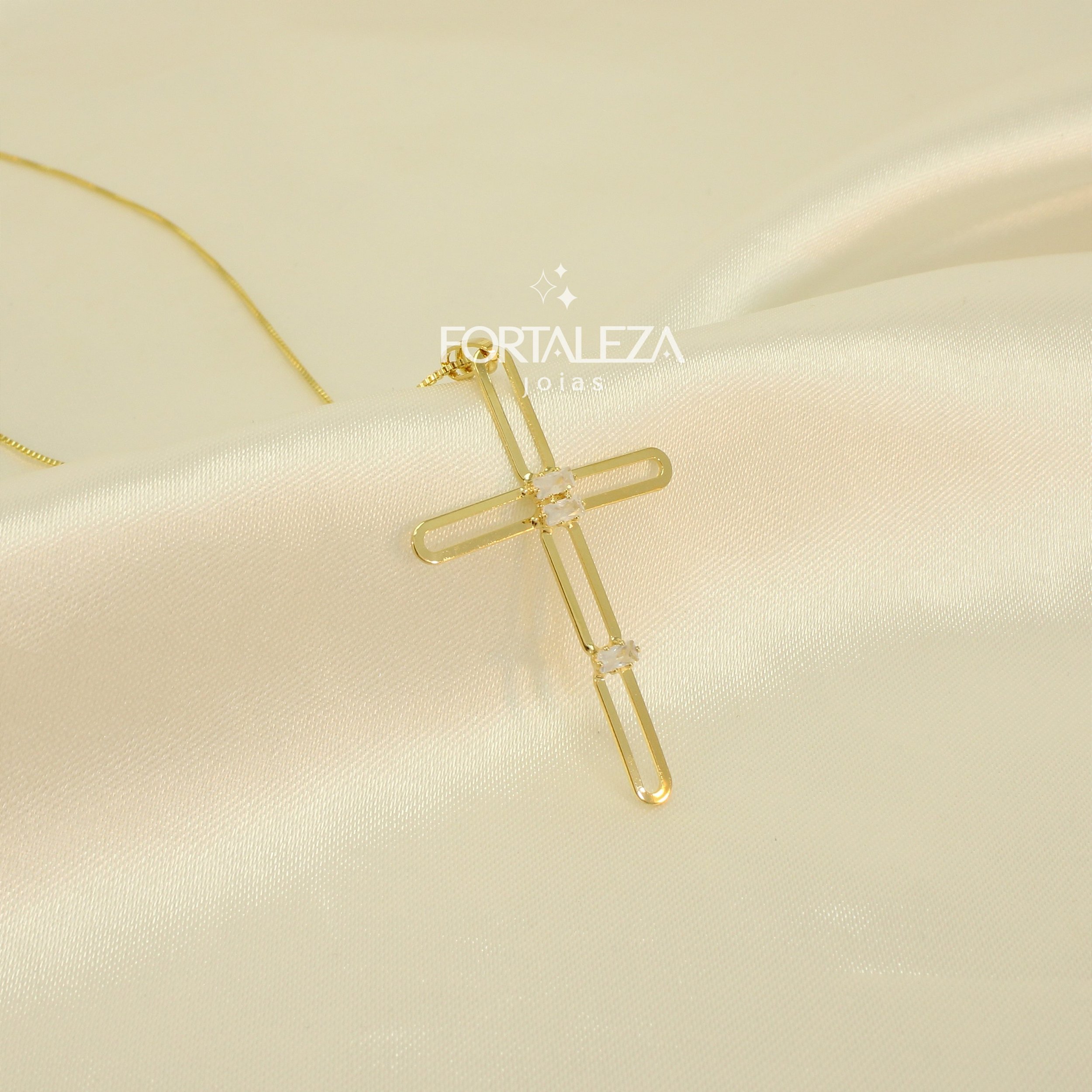 Gargantilha de Cruz com Zircônia Cristal Banhado a Ouro 18k