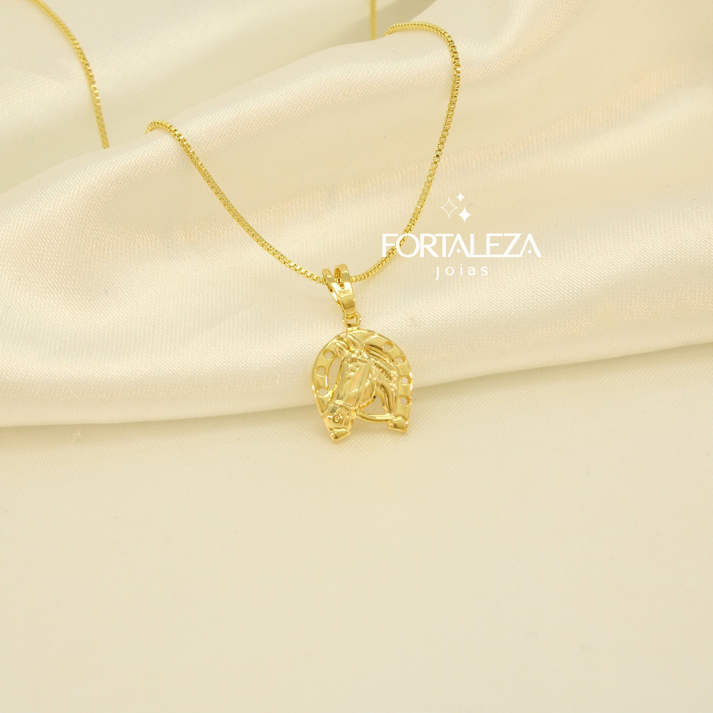 Gargantilha Cavalo e Ferradura Banhado a Ouro 18k