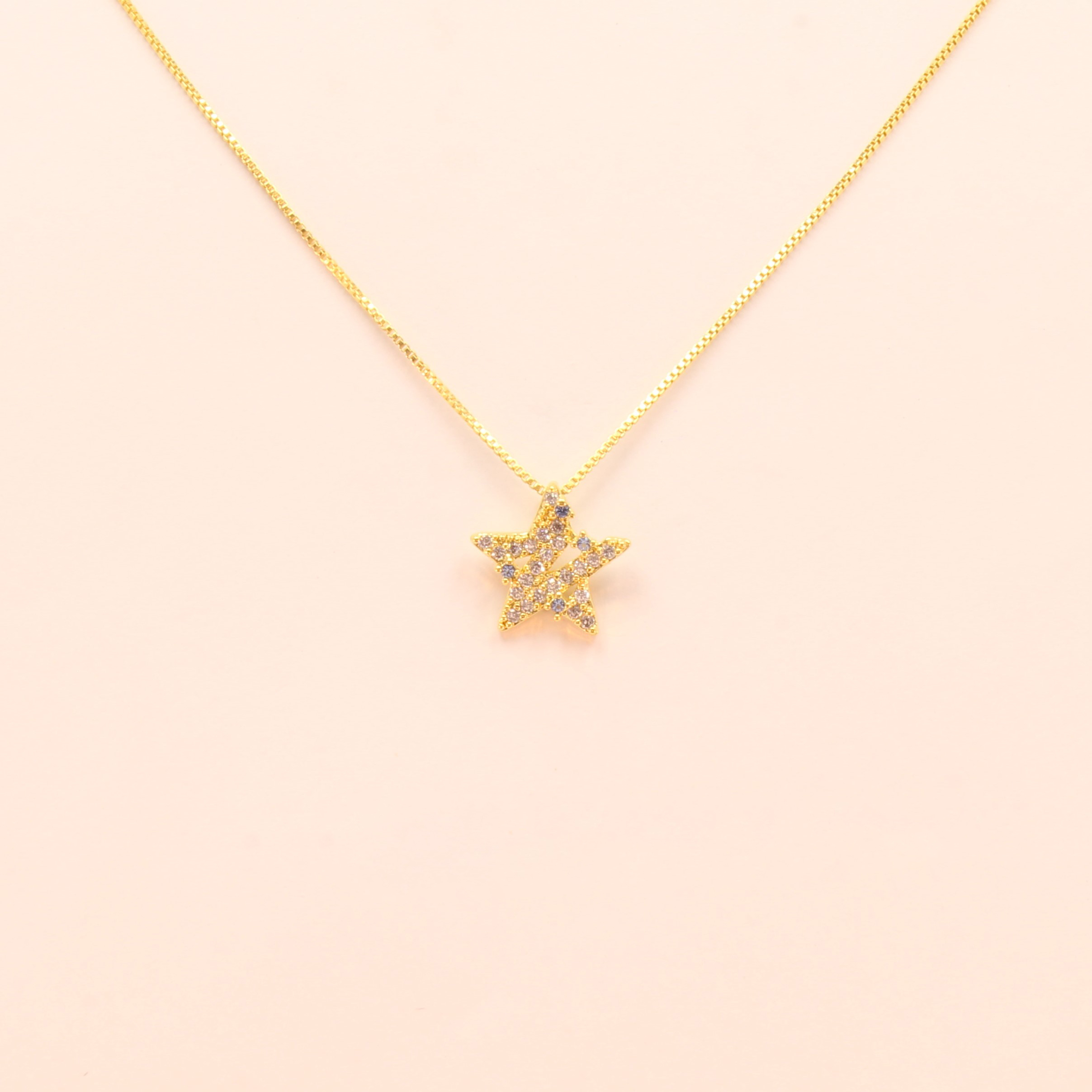 Gargantilha com Estrela Cravejada em Zircônia Cristal e Topázio Azul Folheado a Ouro 18k
