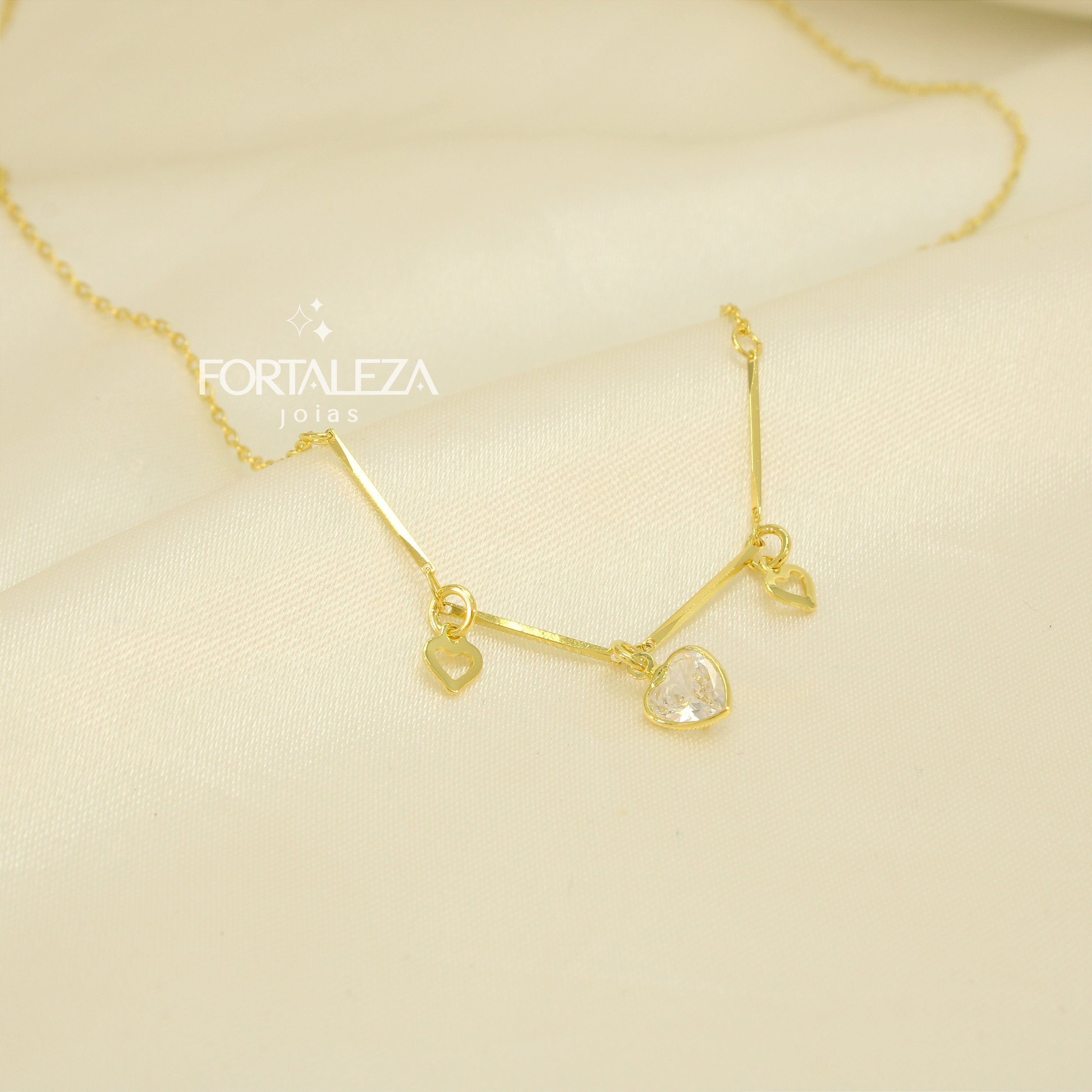 Gargantilha de Corações Vazados e Detalhe em Zircônia Cristal Banhado a Ouro 18k