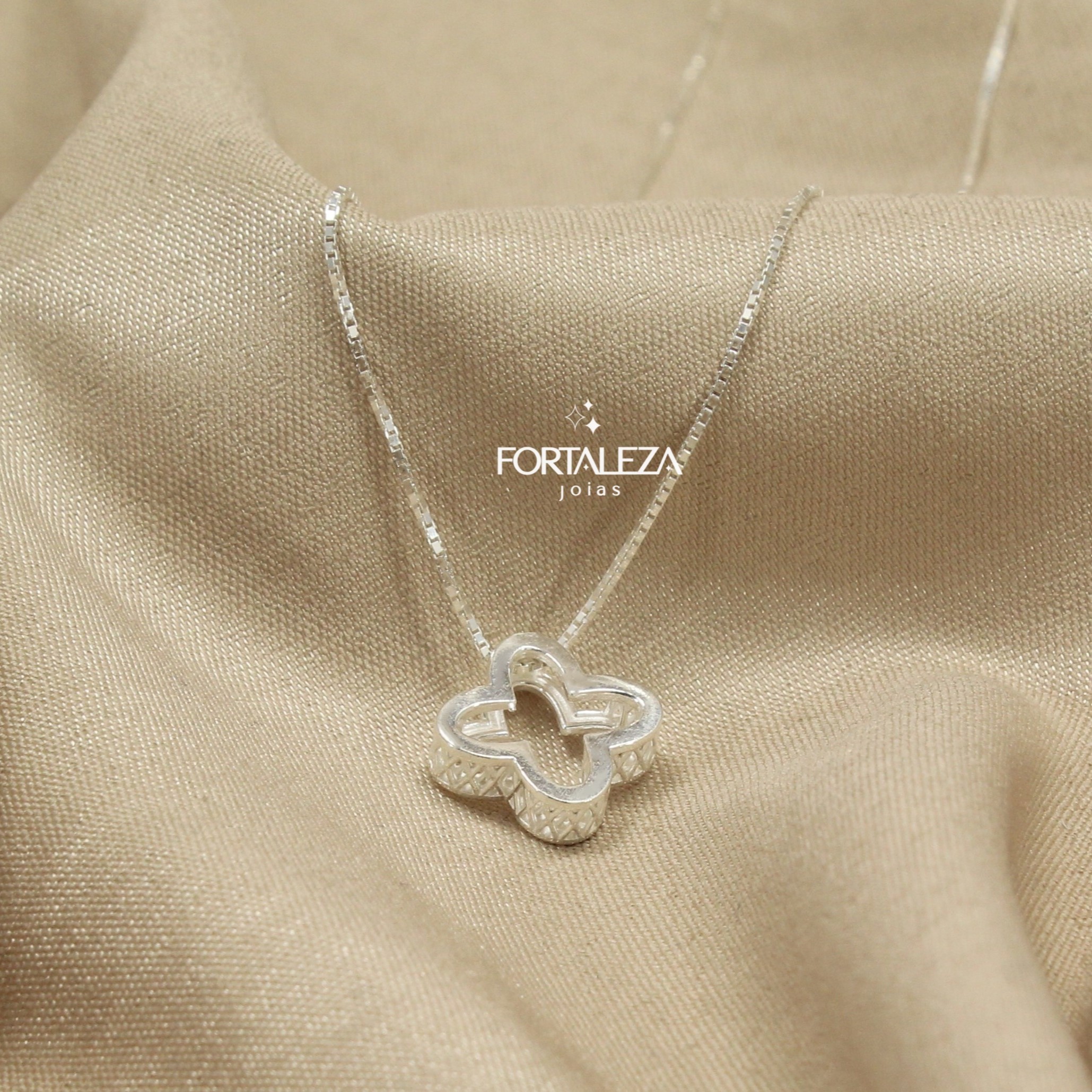 Gargantilha Trevo Vazado em Prata 925