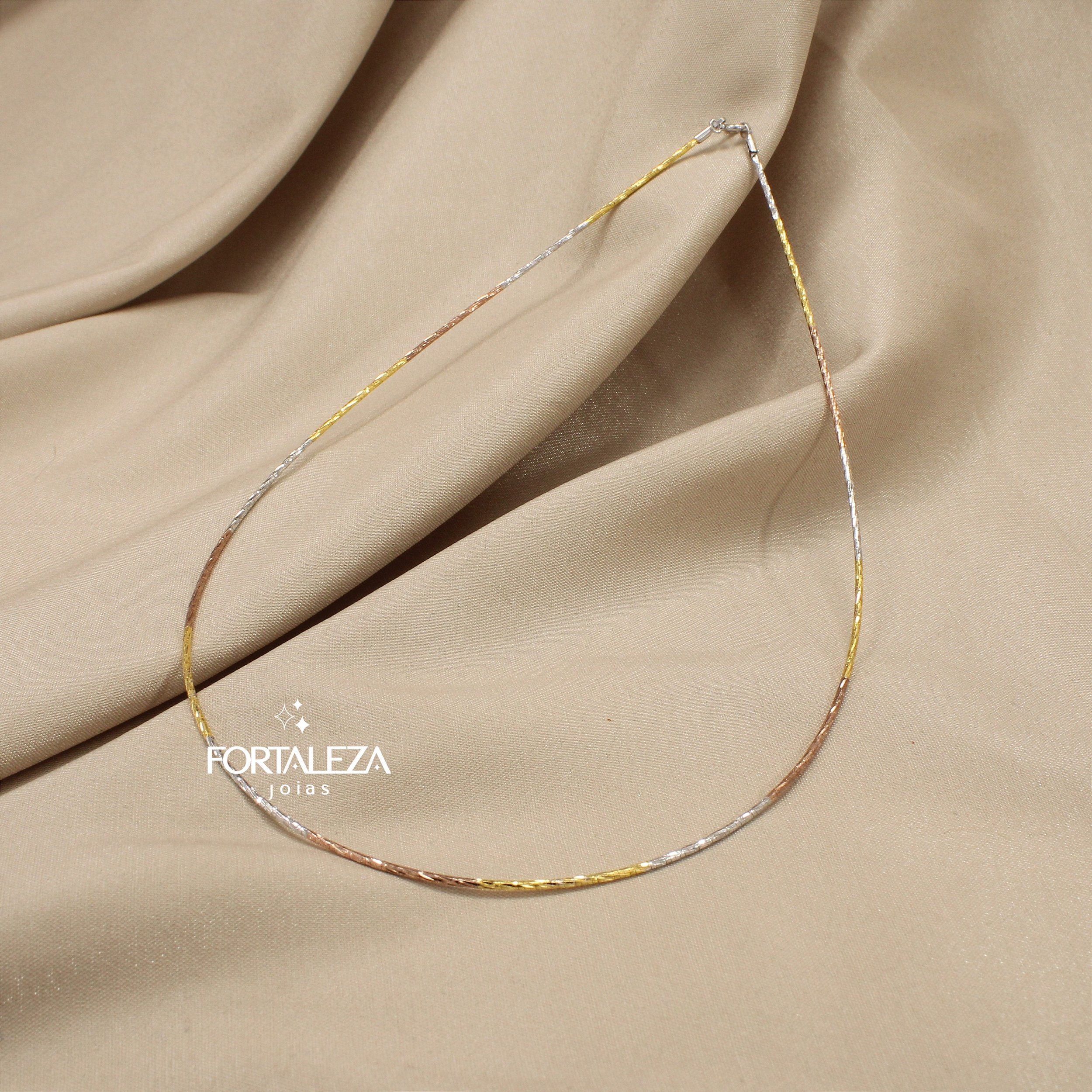 Choker de Aro Diamantado em Prata 925 Banhado em Três Tons de Ouro 18k
