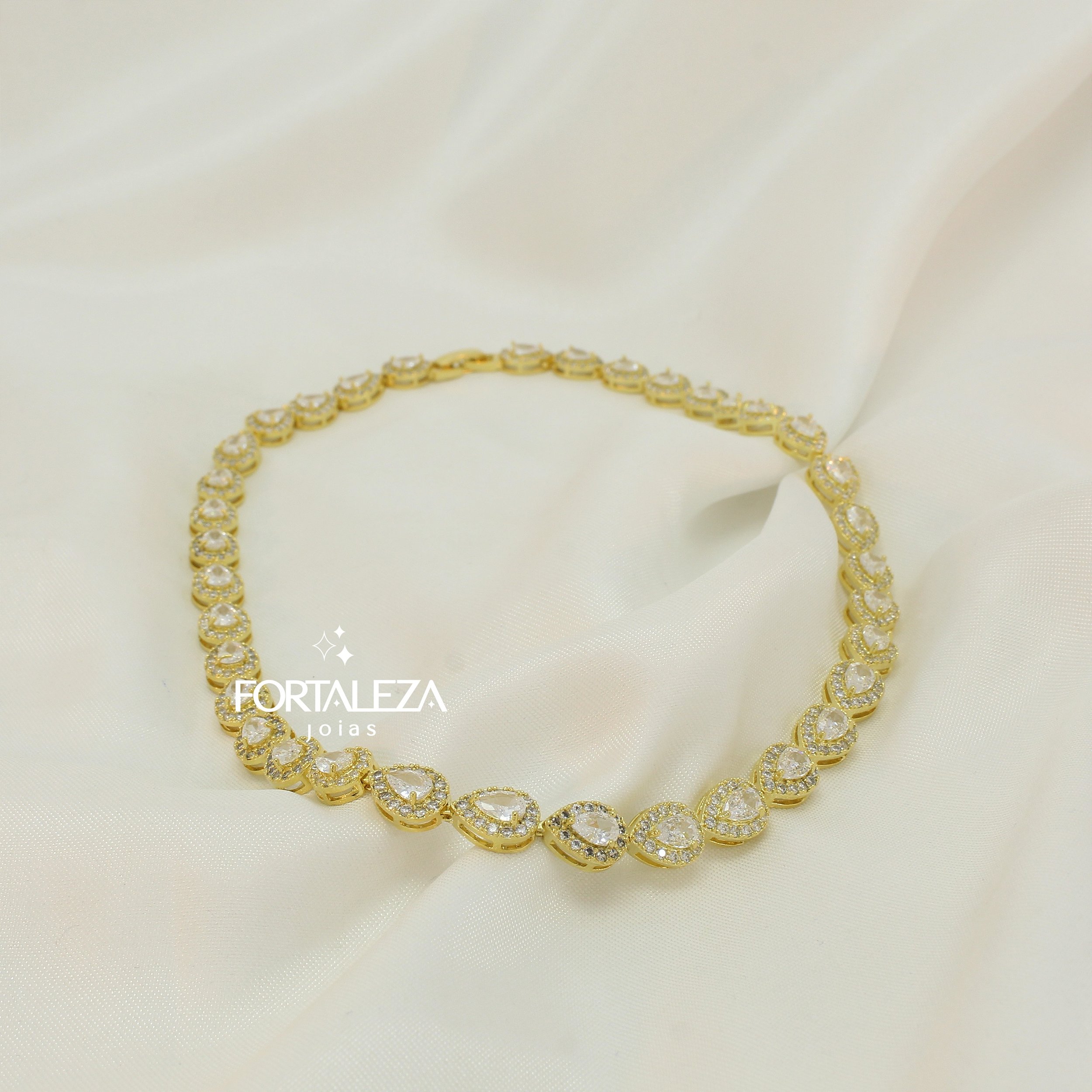 Gargantilha Riviera com Design de Gotas Cravejadas em Zircônia Cristal Banhado a Ouro 18k