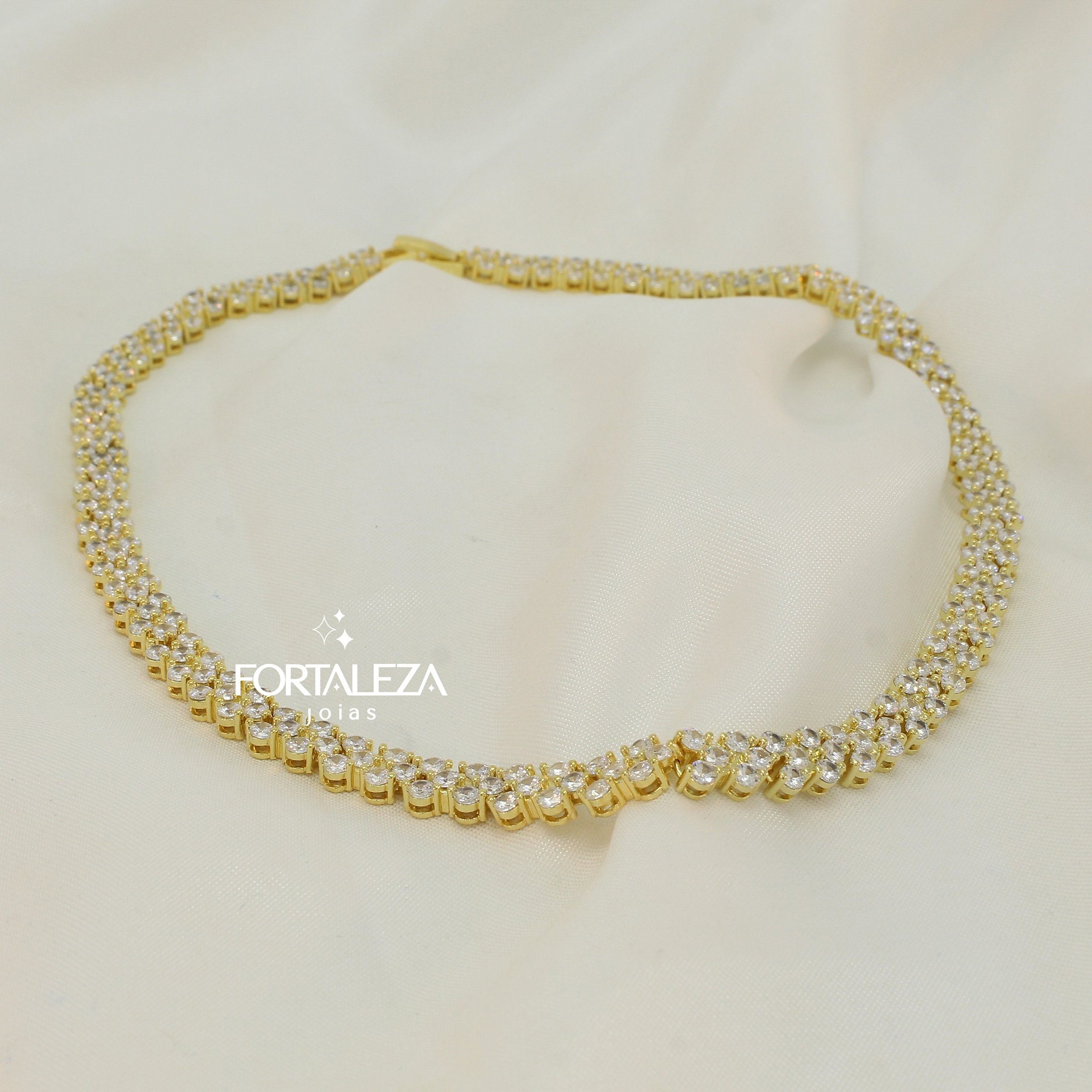 Gargantilha Riviera em Zircônia Cristal Banhado a Ouro 18k