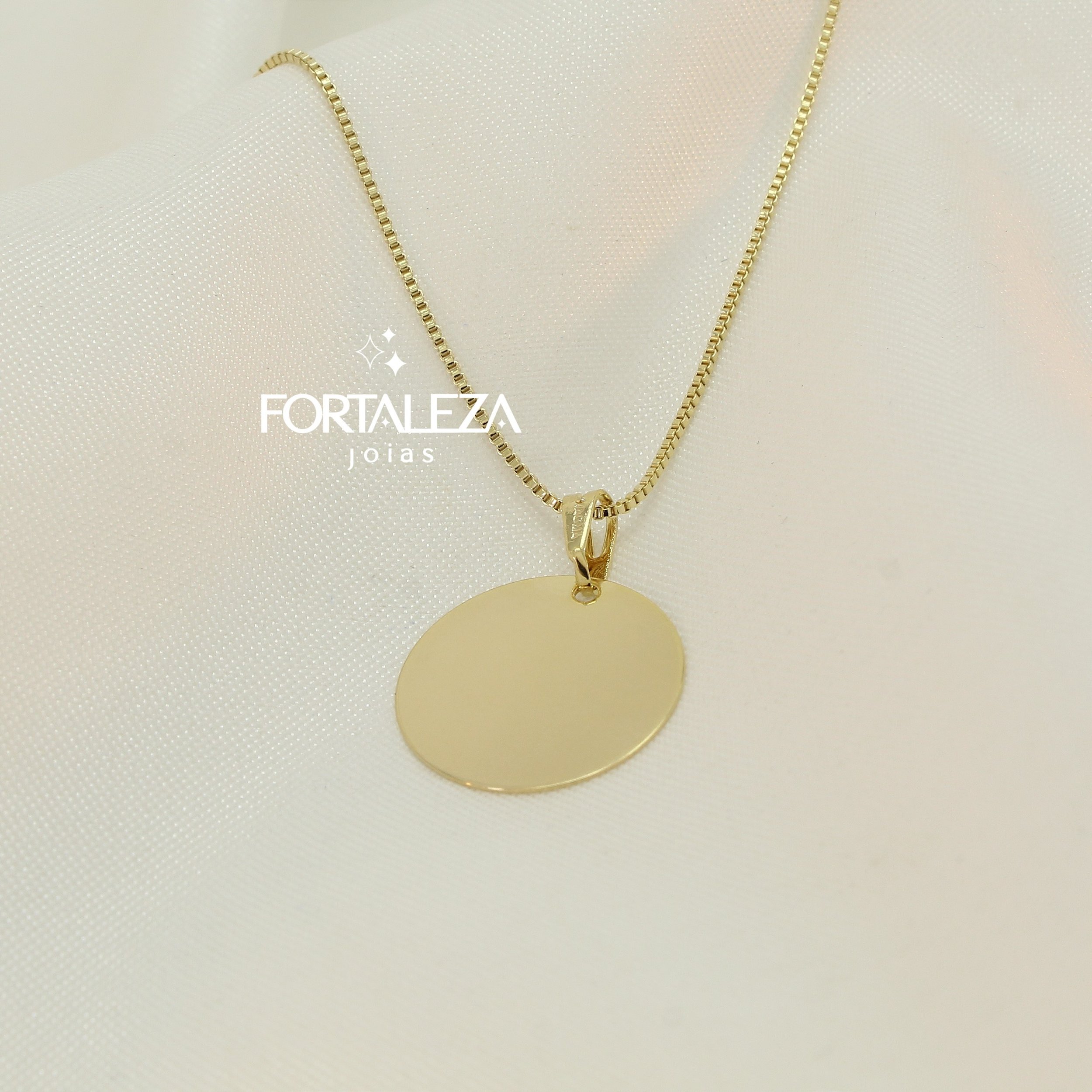 Gargantilha com corrente veneziana e medalha grande para você personalizar os momentos mais importantes da sua vida.
