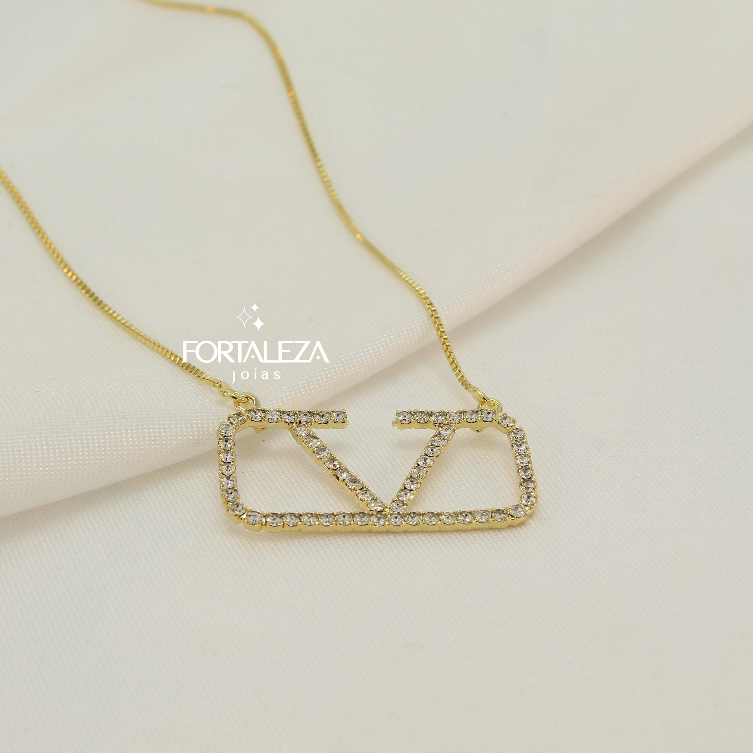 Gargantilha Inspiração Valentino Cravejado em Zircônia Cristal Banhado a Ouro 18k