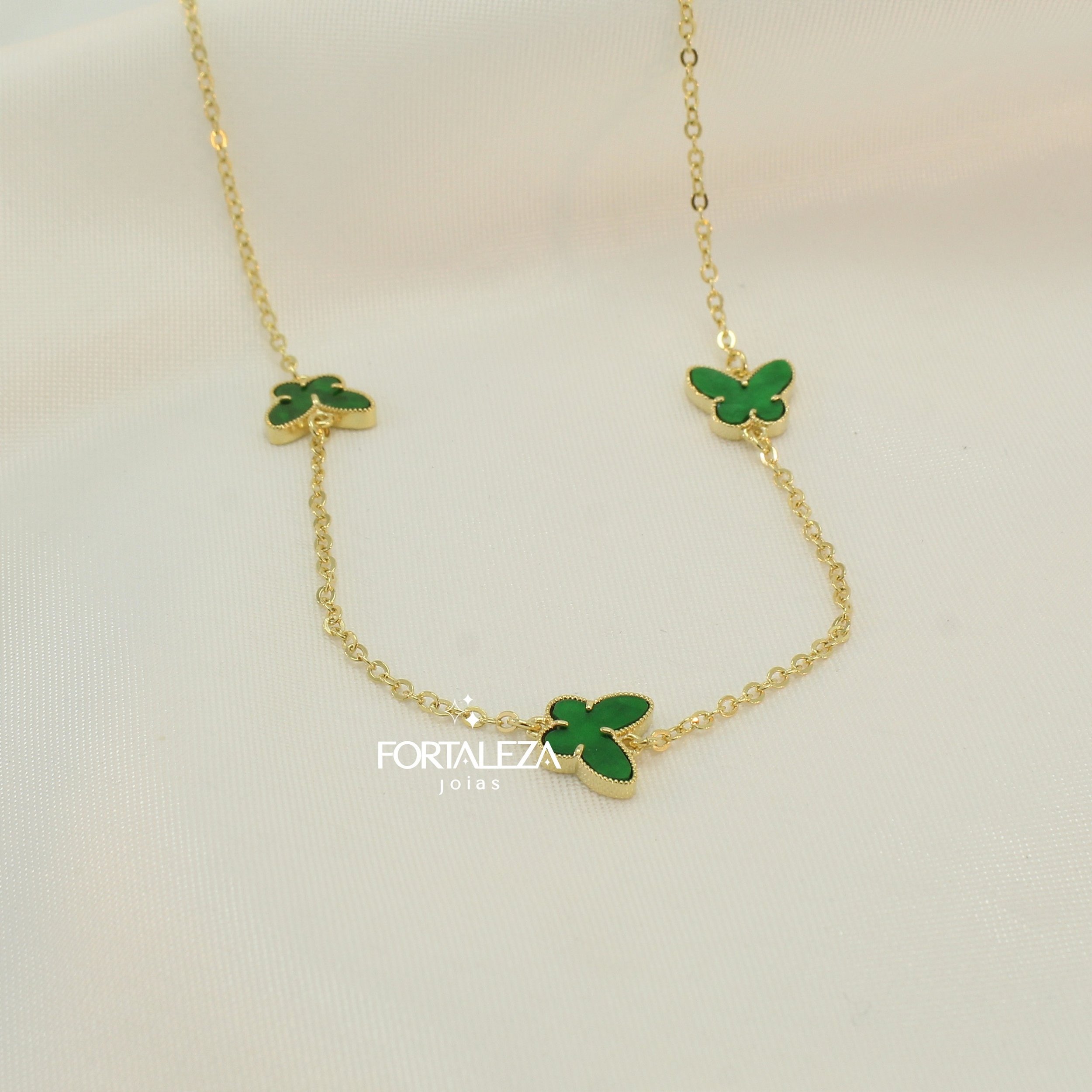 Gargantilha de Borboletas com Resina Banhado a Ouro 18k