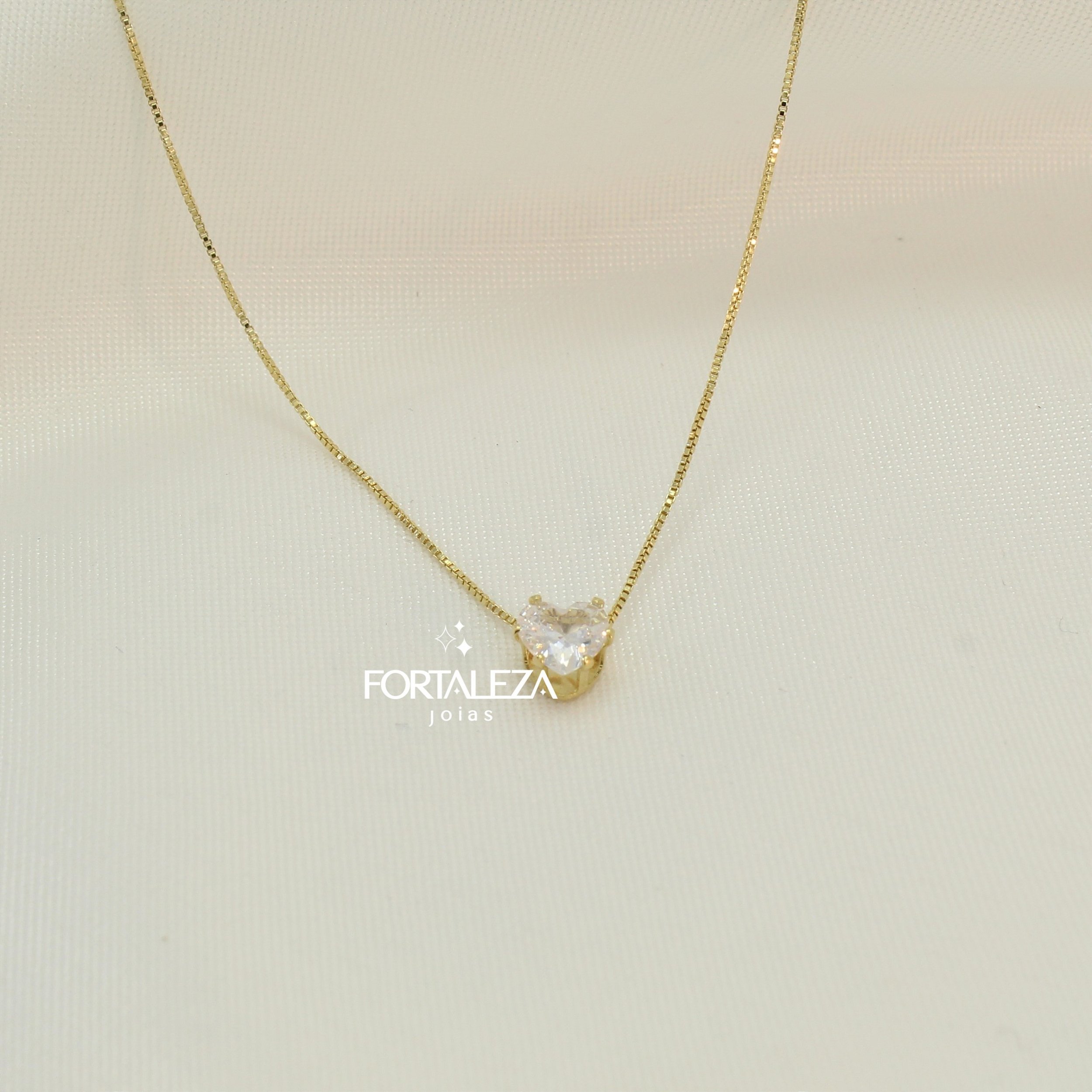 Gargantilha Coração com Zircônia Cristal Banhado a Ouro 18k
