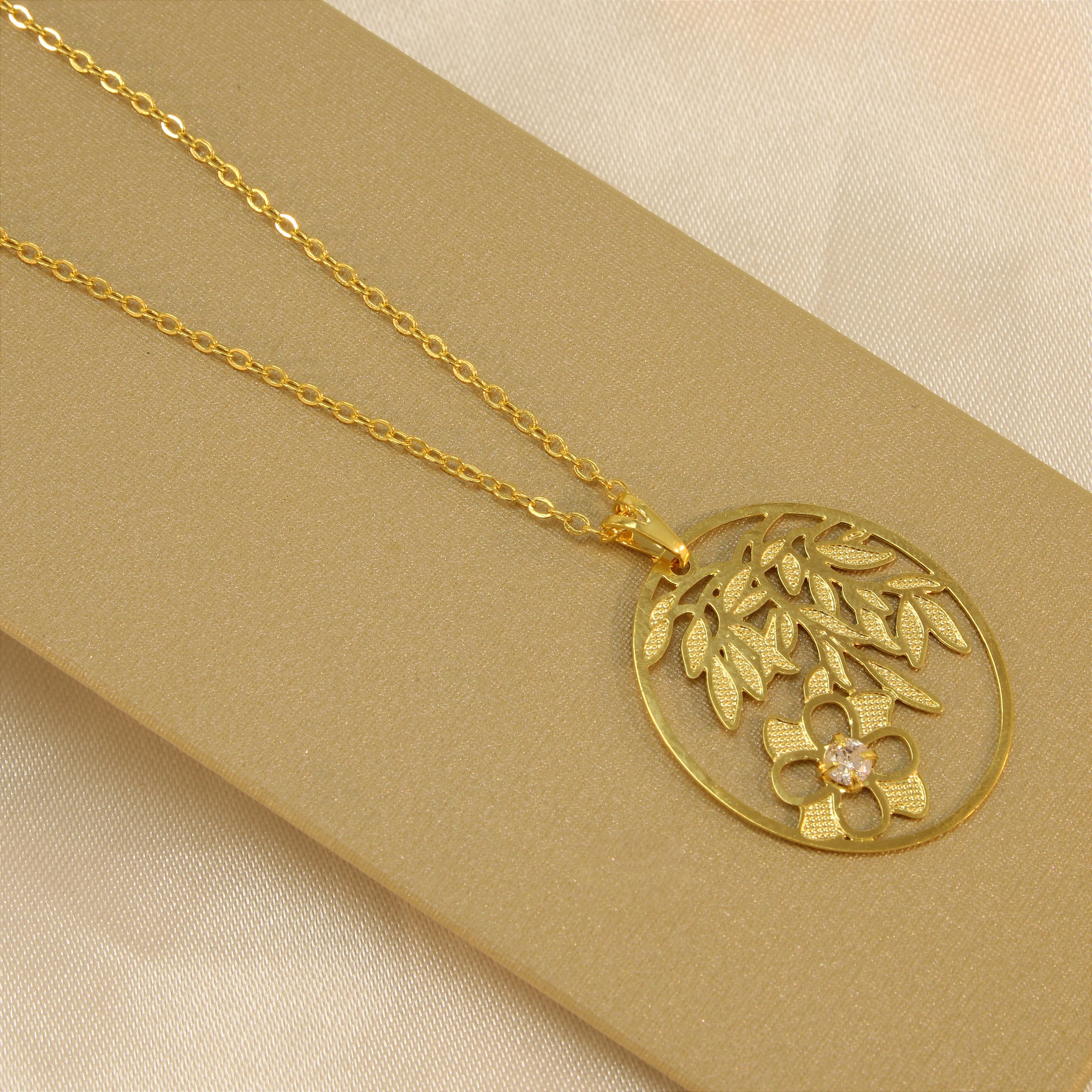 Gargantilha com Desing de Flor e Detalhe em Zircônia Cristal Banhado a Ouro 18k