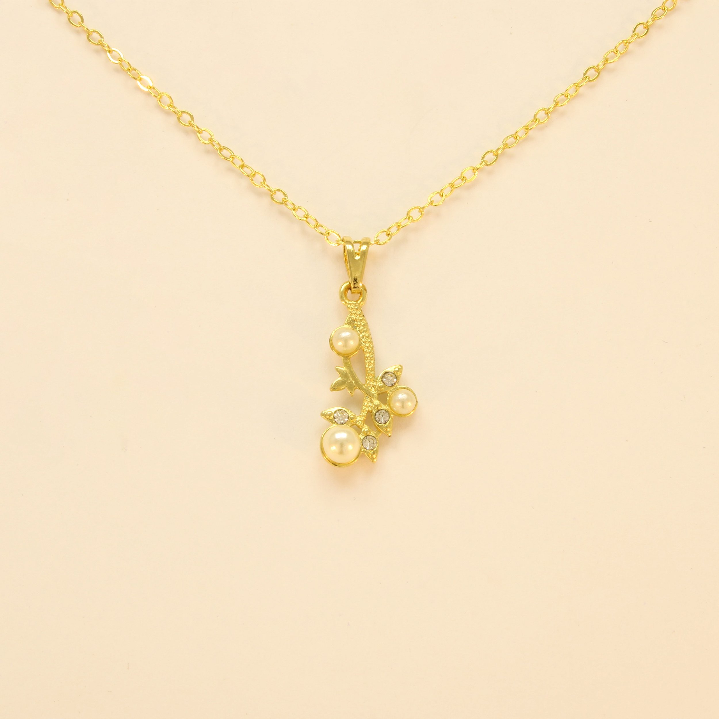 Gargantilha de Ramos com com Detalhes em Pérola e Zircônia Cristal Folheado a Ouro 18k