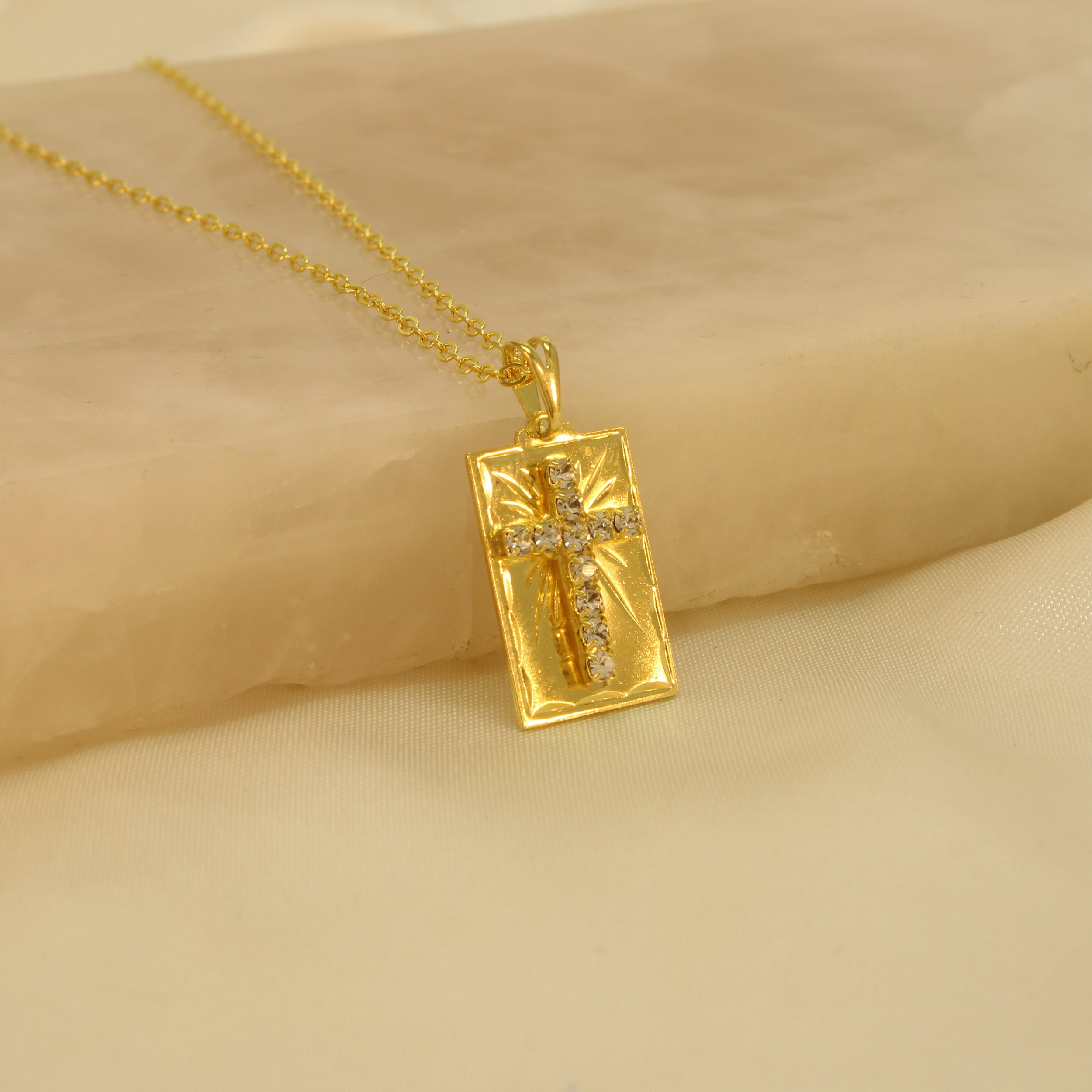 Gargantilha de Cruz com Zircônia Banhado a Ouro 18k