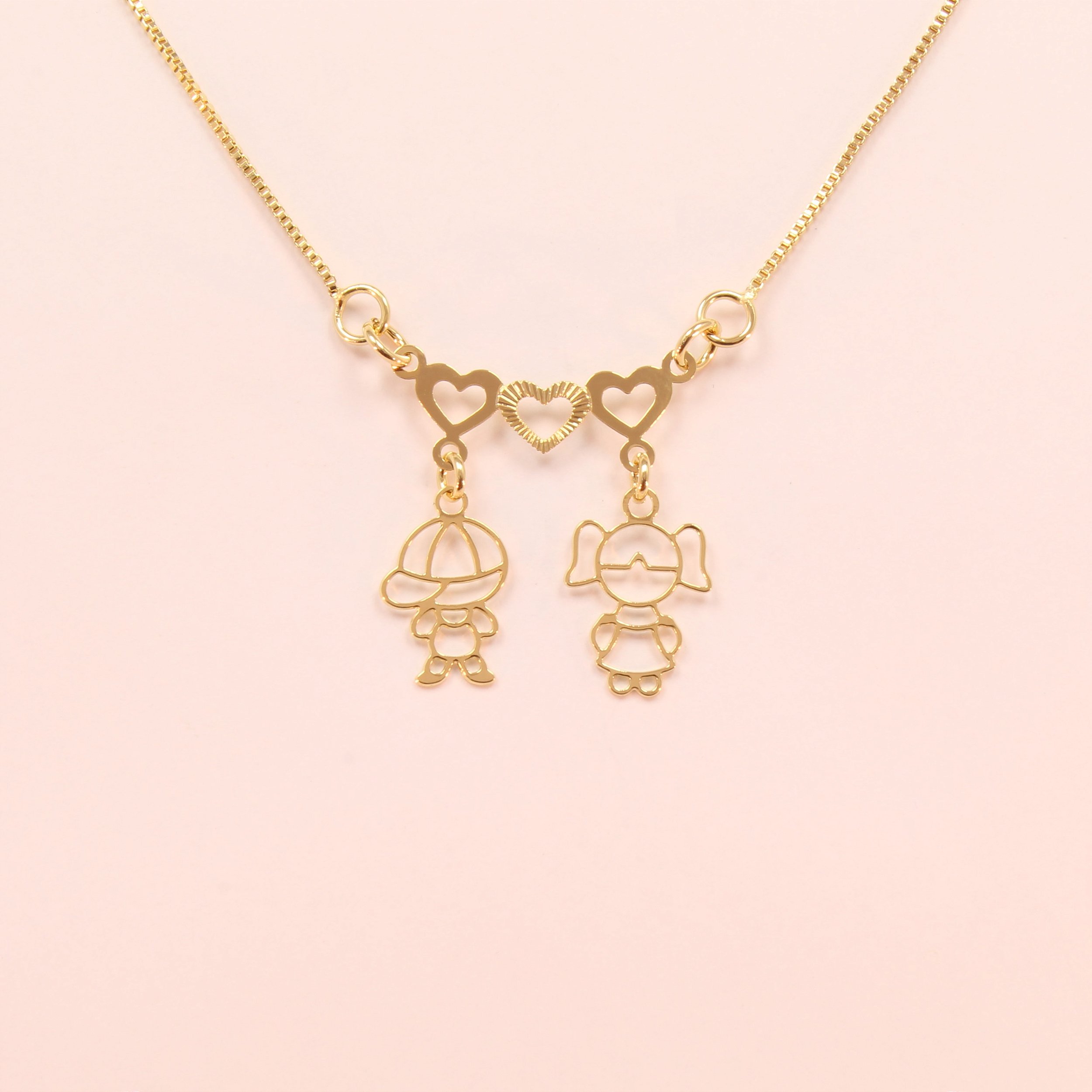 Gargantilha Menina e Menino Folheado a Ouro 18k