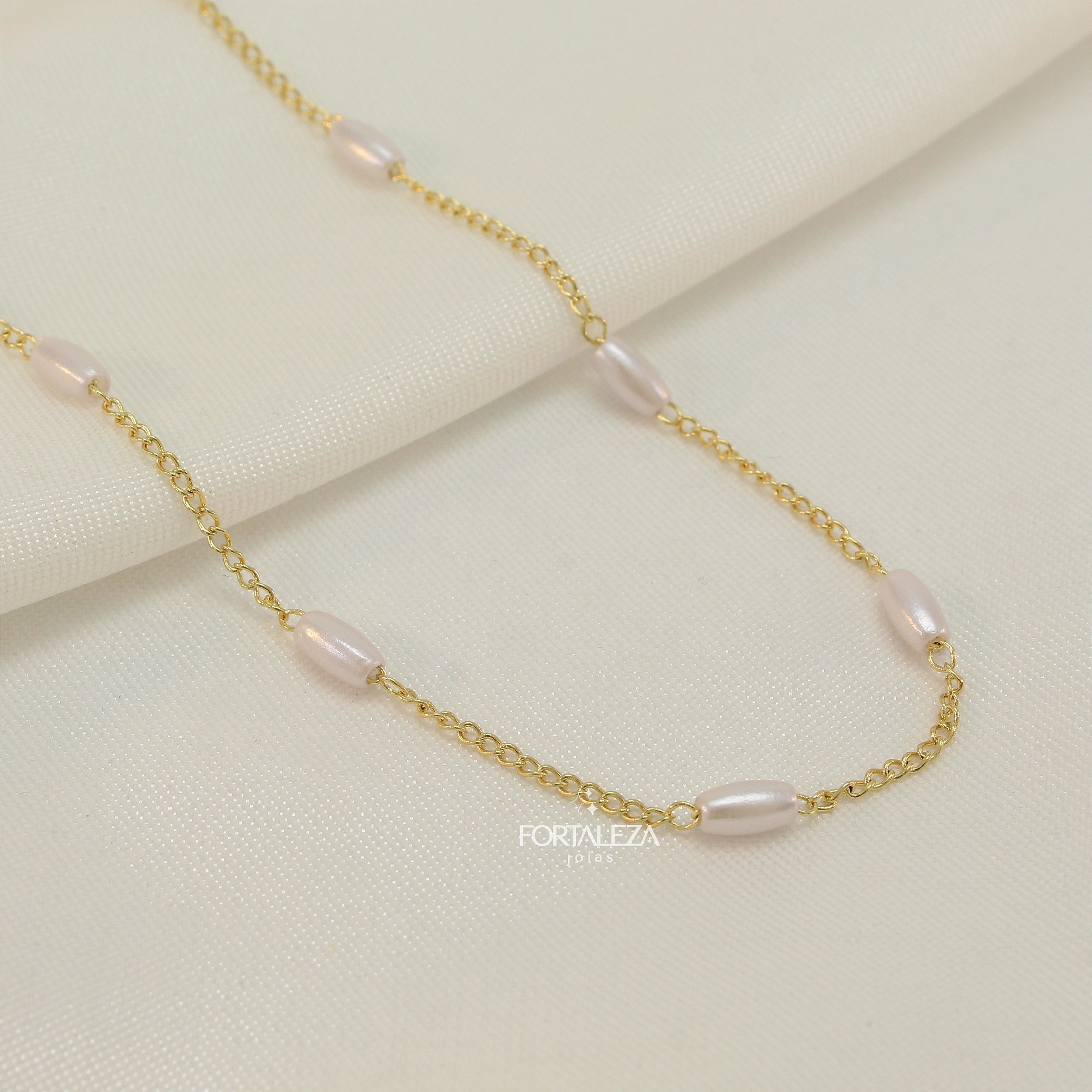 Gargantilha com Detalhes de Pérolas Ovais Banhado a Ouro 18k