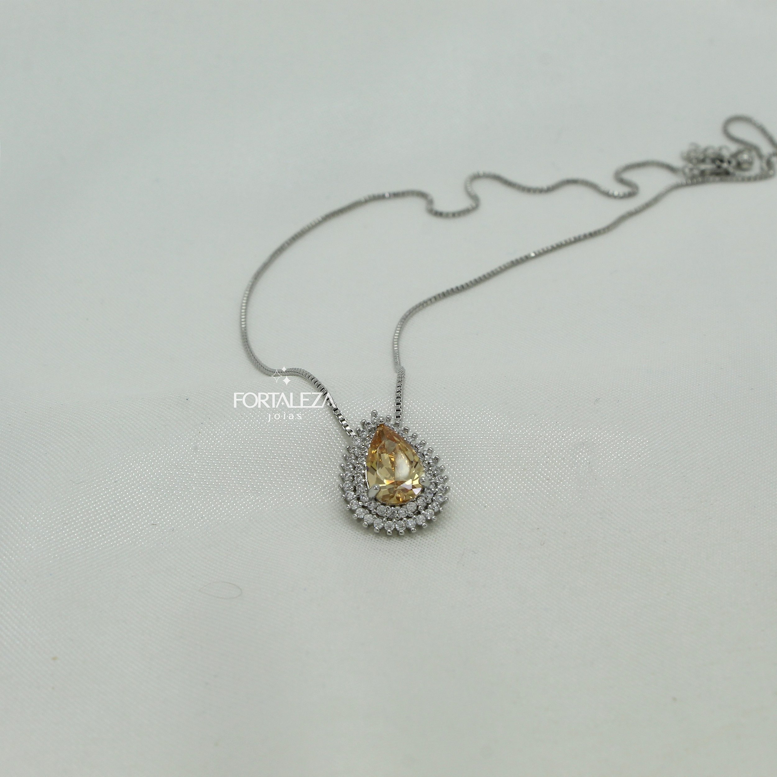 Gargantilha com Pingente Gota Cravejado com Zircônia Imperial Banhado a Ouro Branco
