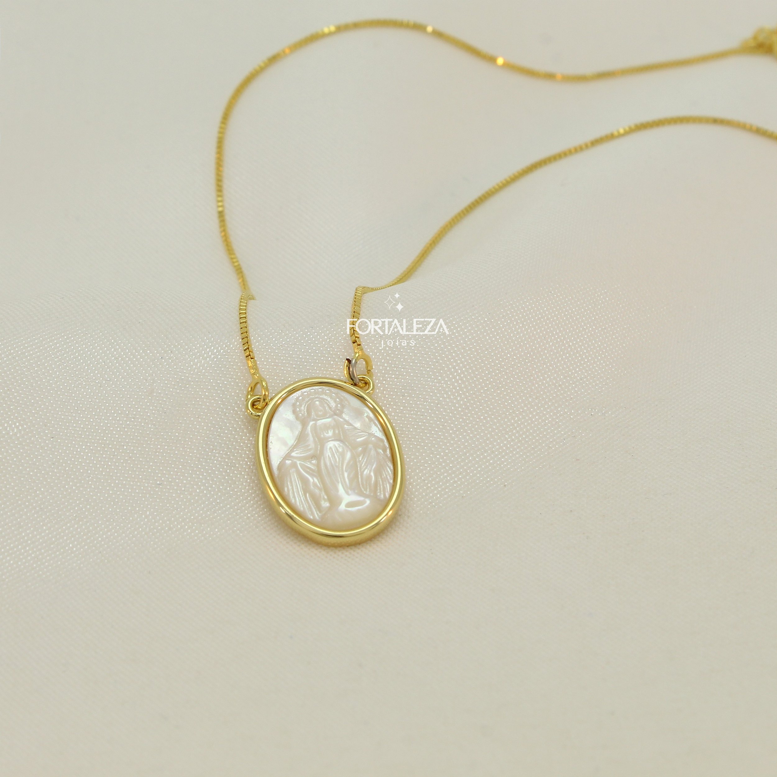 Gargantilha Madrepérolas com Pingente Nossa Senhora das Graças Banhado a Ouro 18k
