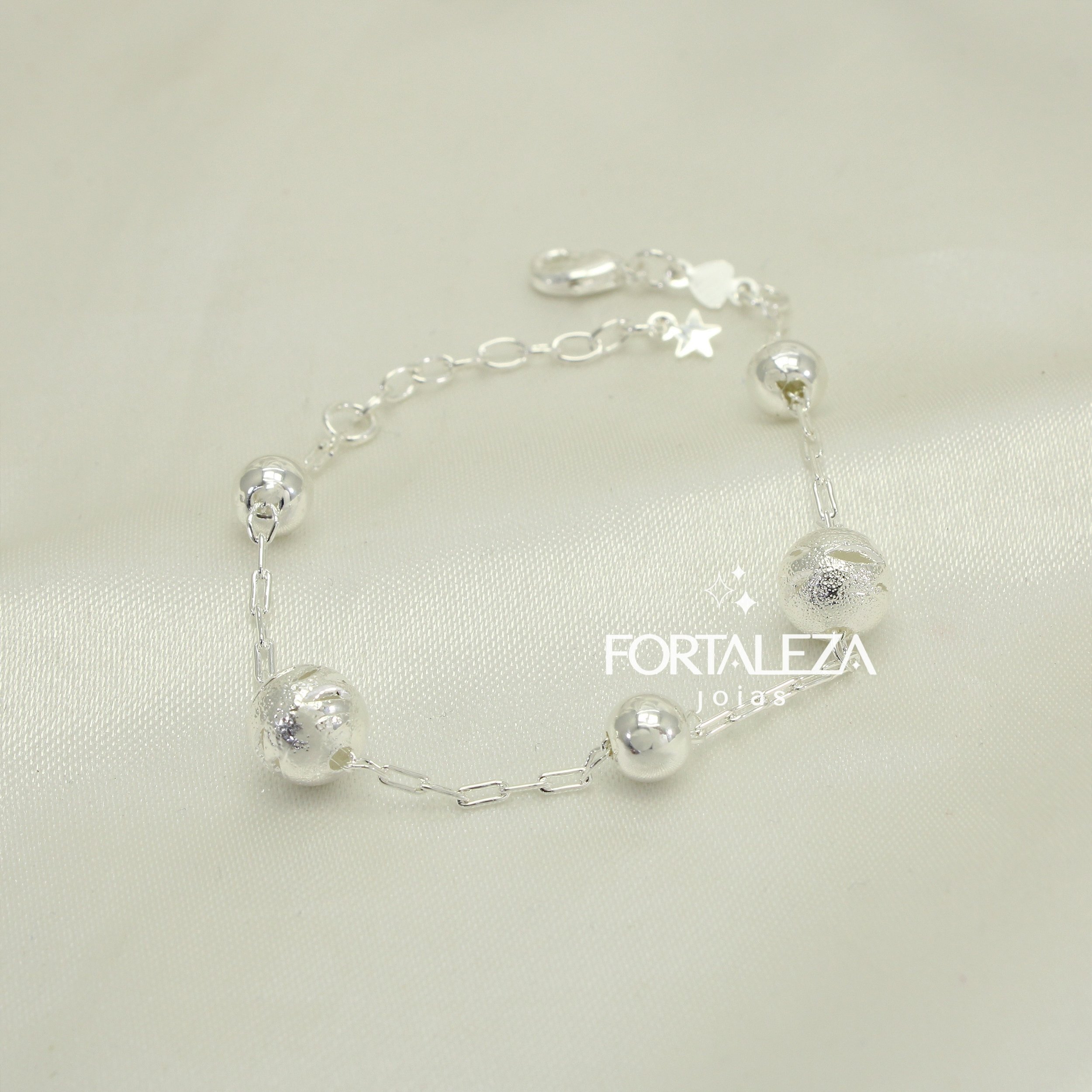 Pulseira Bolinha Polida e Granulada Banhado a Prata 925