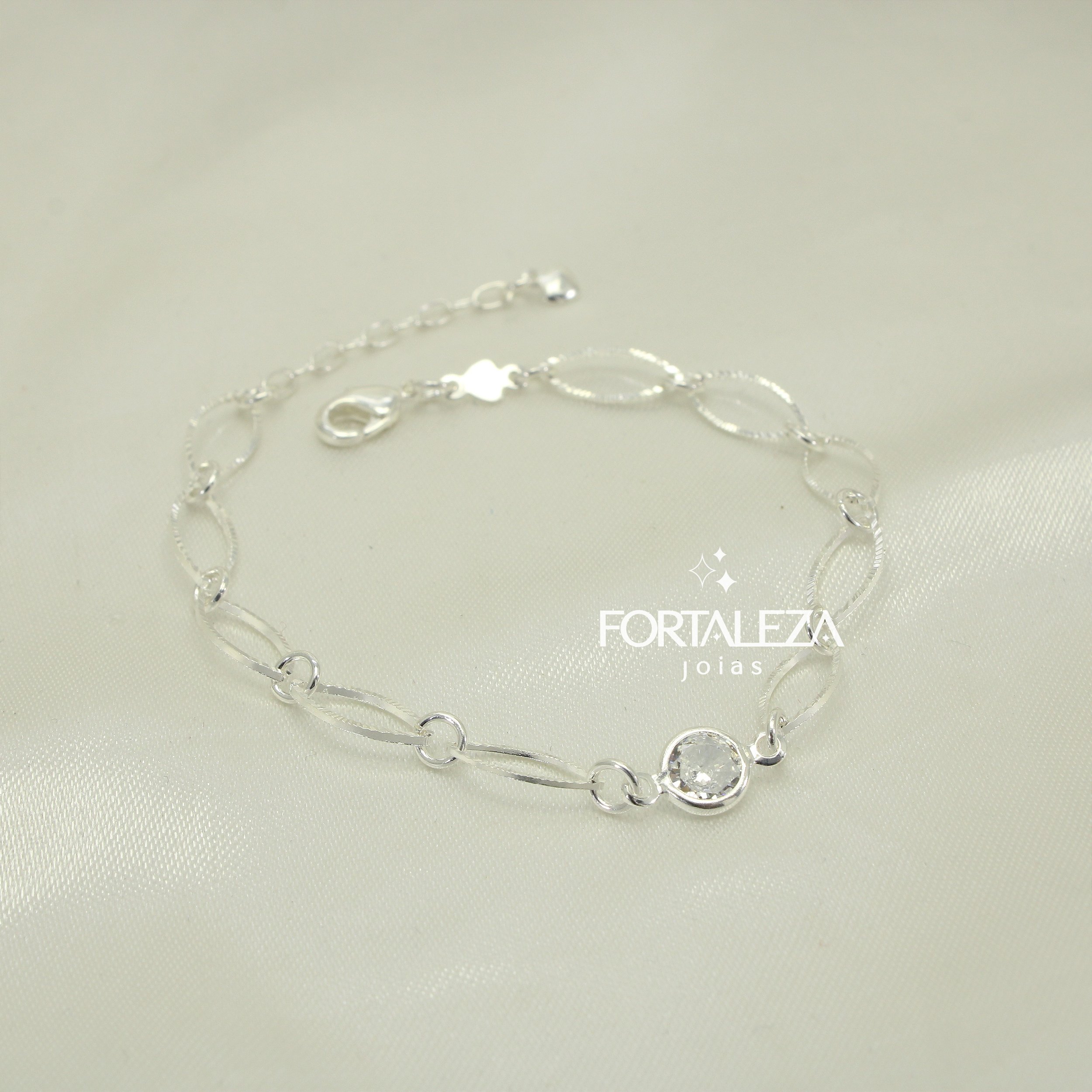 Pulseira de Elos Navete com Zircônia Cristal Banhado a Prata 925