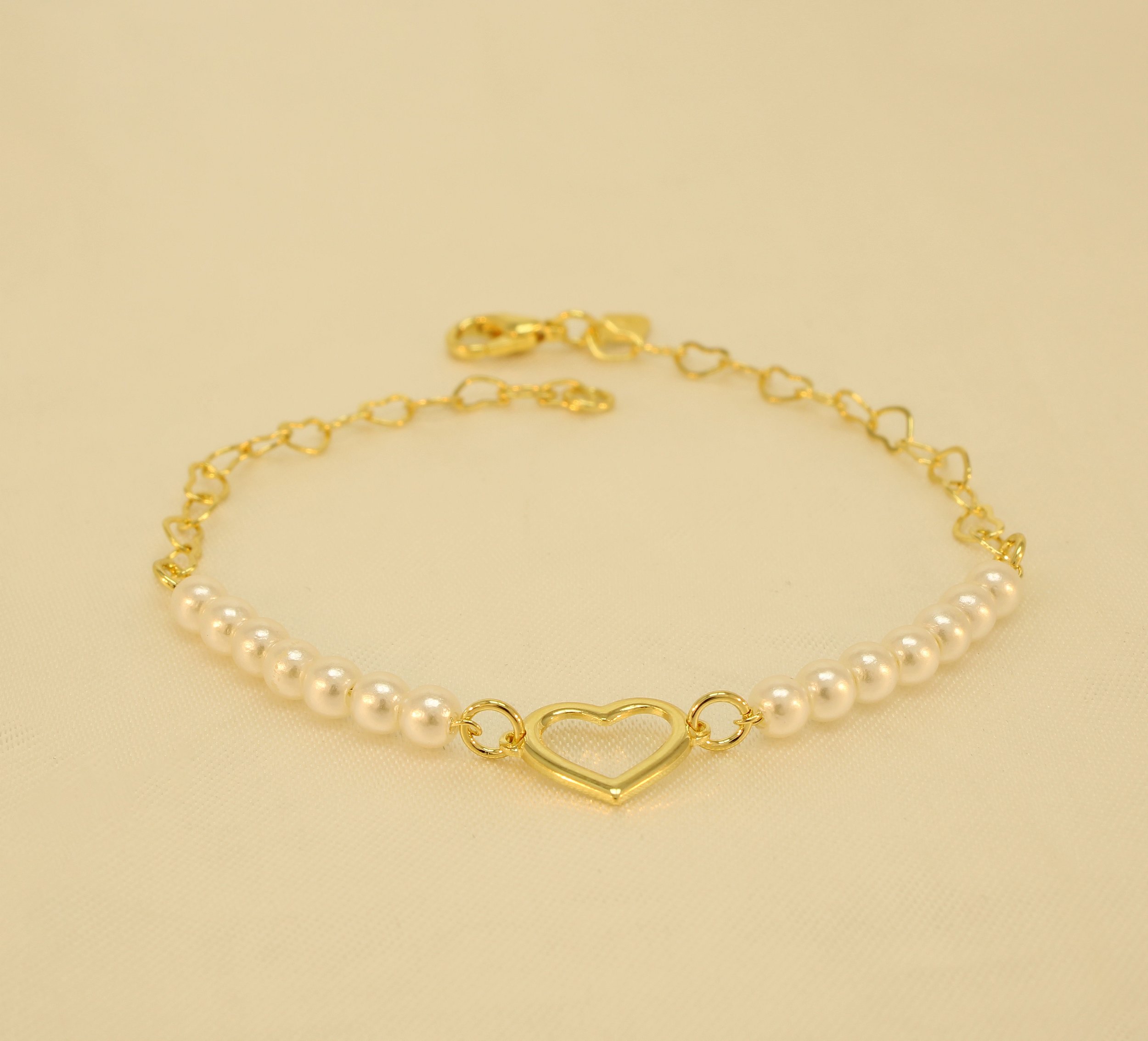 Pulseira com Pérolas e Corações Folheada a Ouro 18k