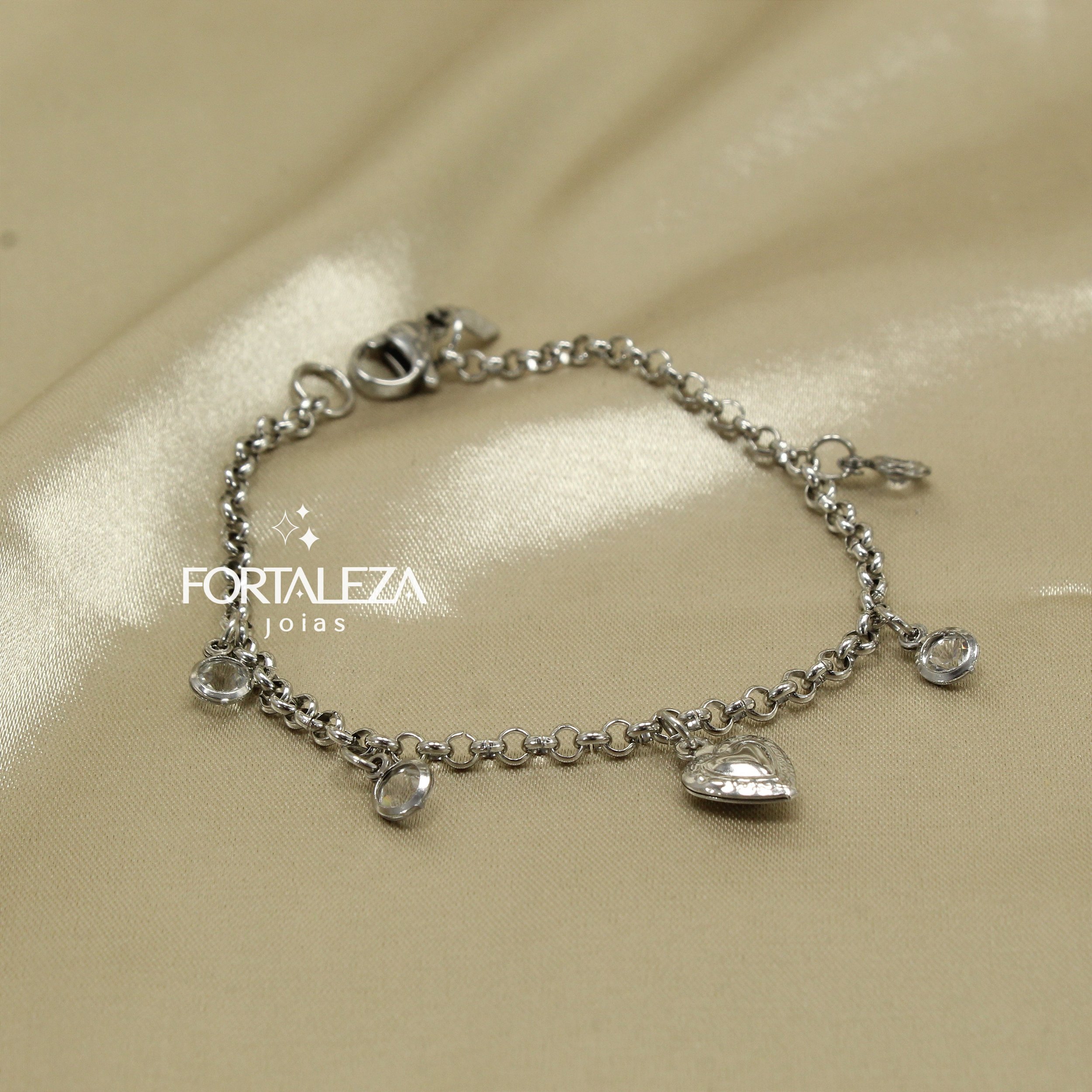Pulseira de Coração com Zircônia Cristal em Aço Inox