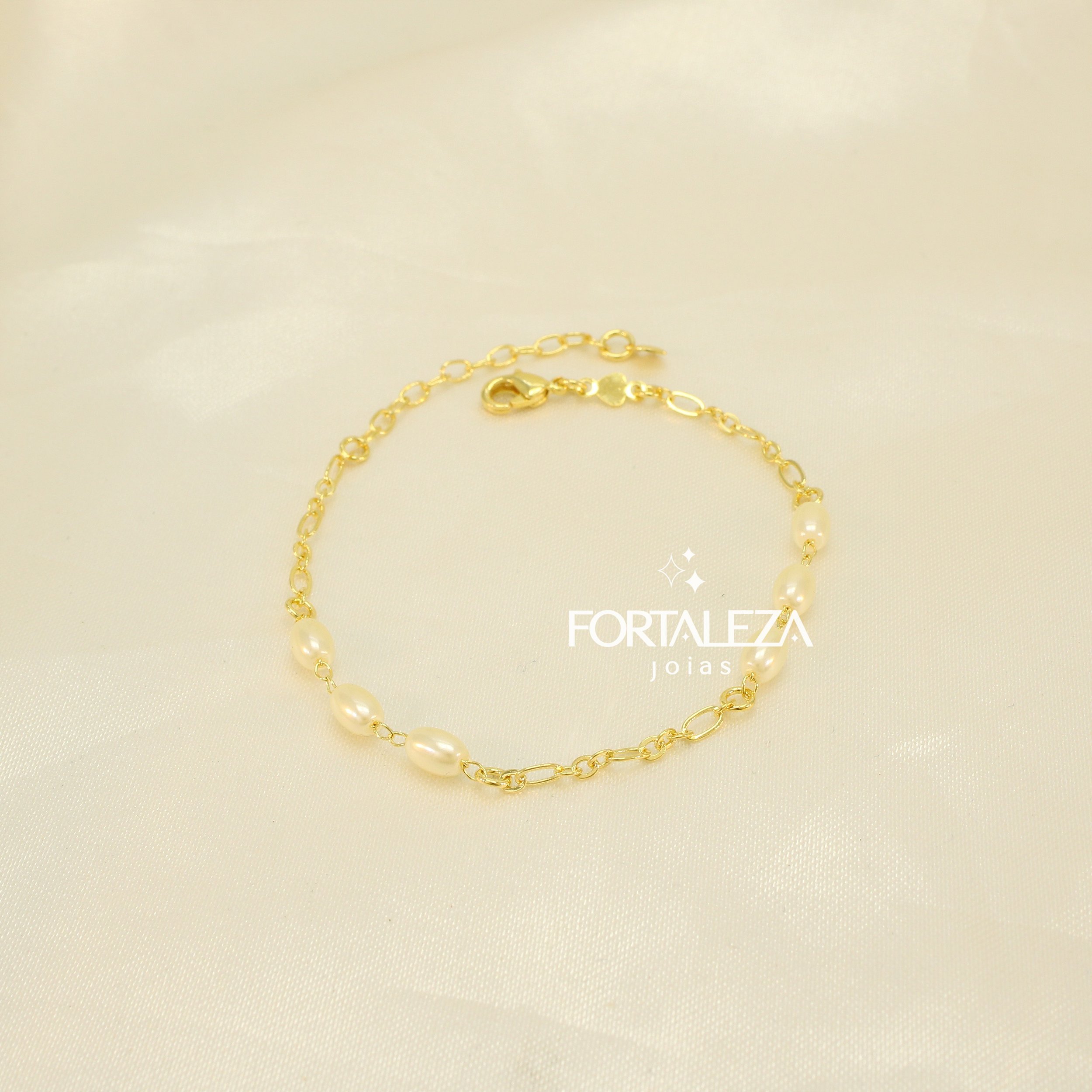 Pulseira com Pérolas Ovais Banhado a Ouro 18k