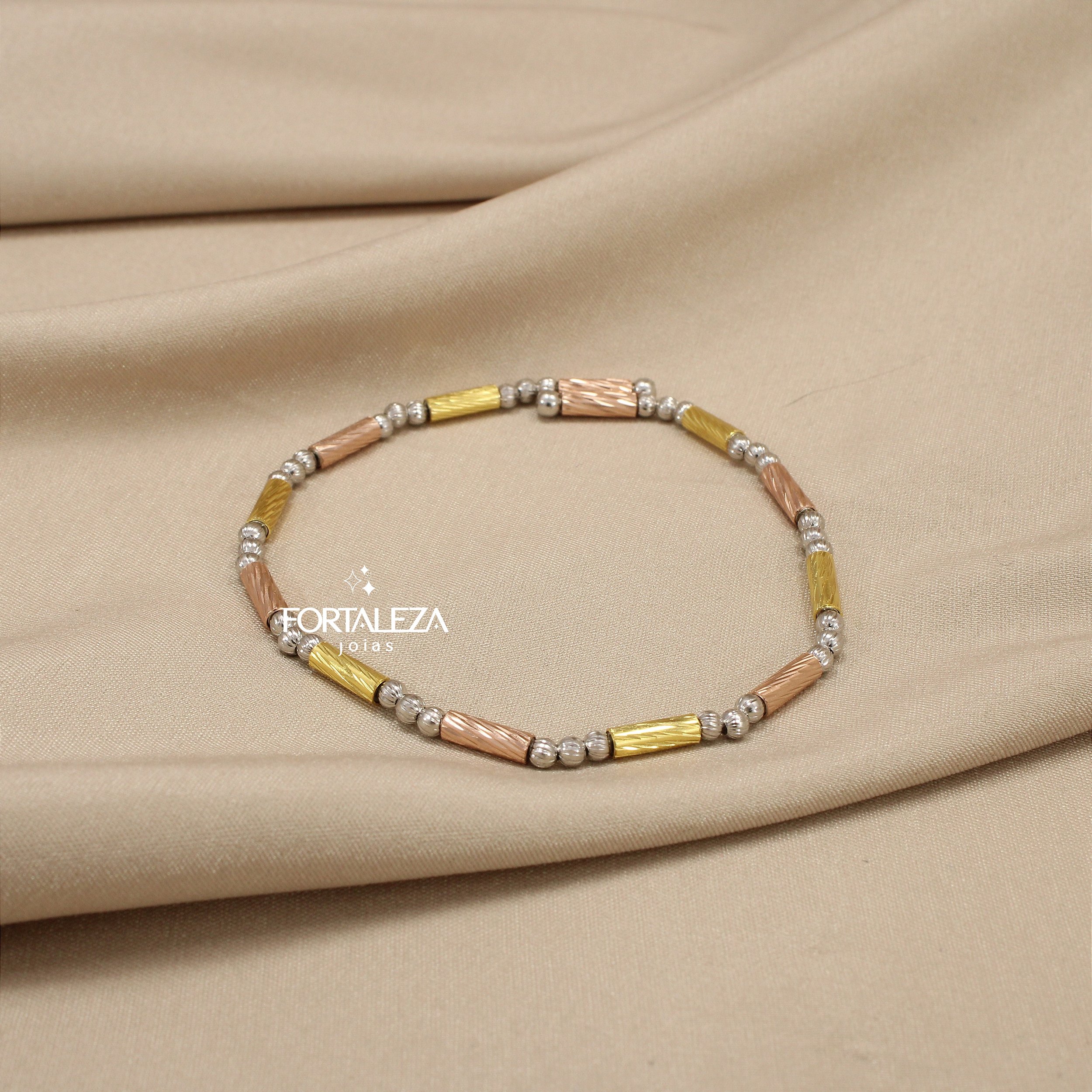 Pulseira e Anel Magnético em Prata 925 Banhado com Três Tons de Ouro 18k