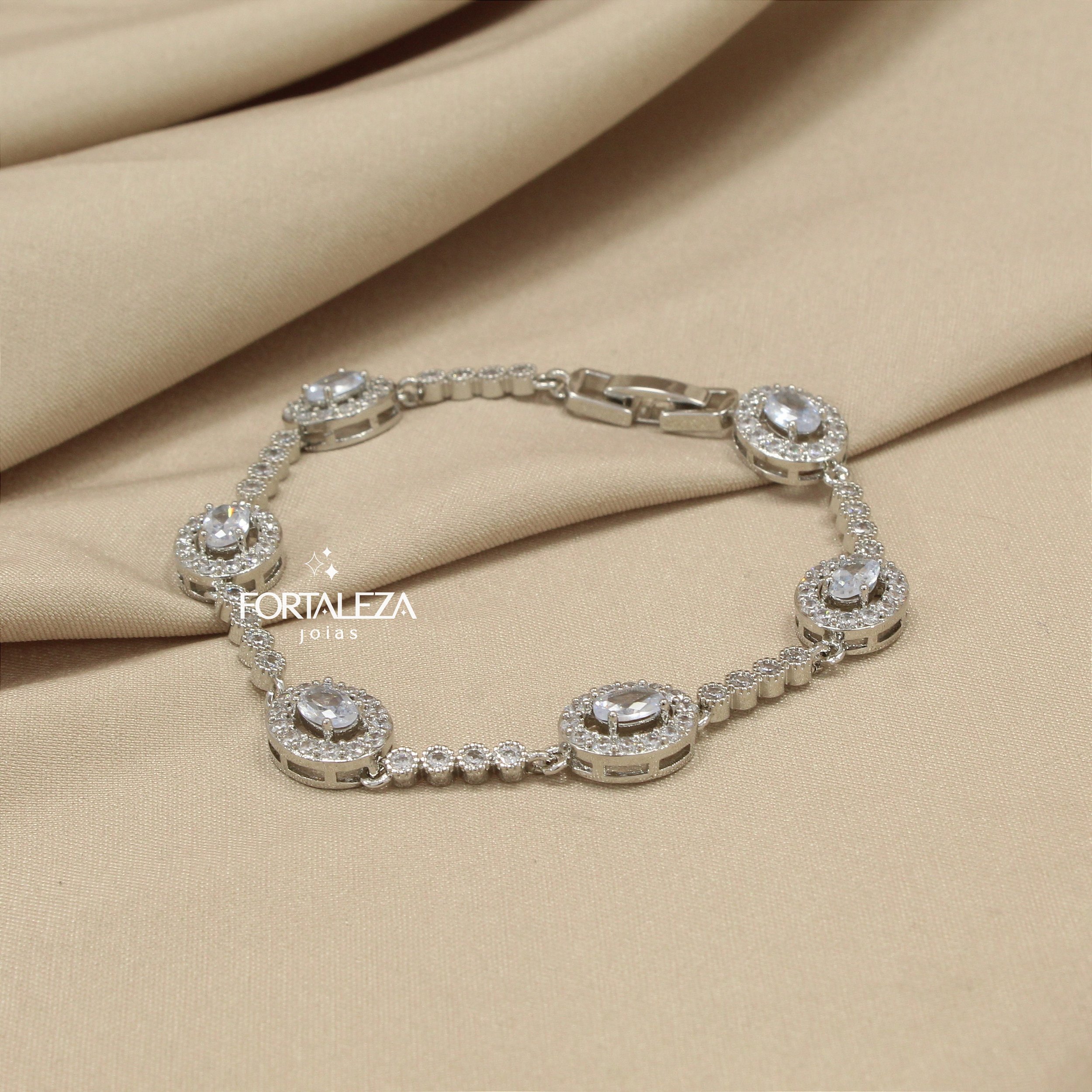 Pulseira Trabalhada em Zircônia Cristal Banhado a Ouro Branco