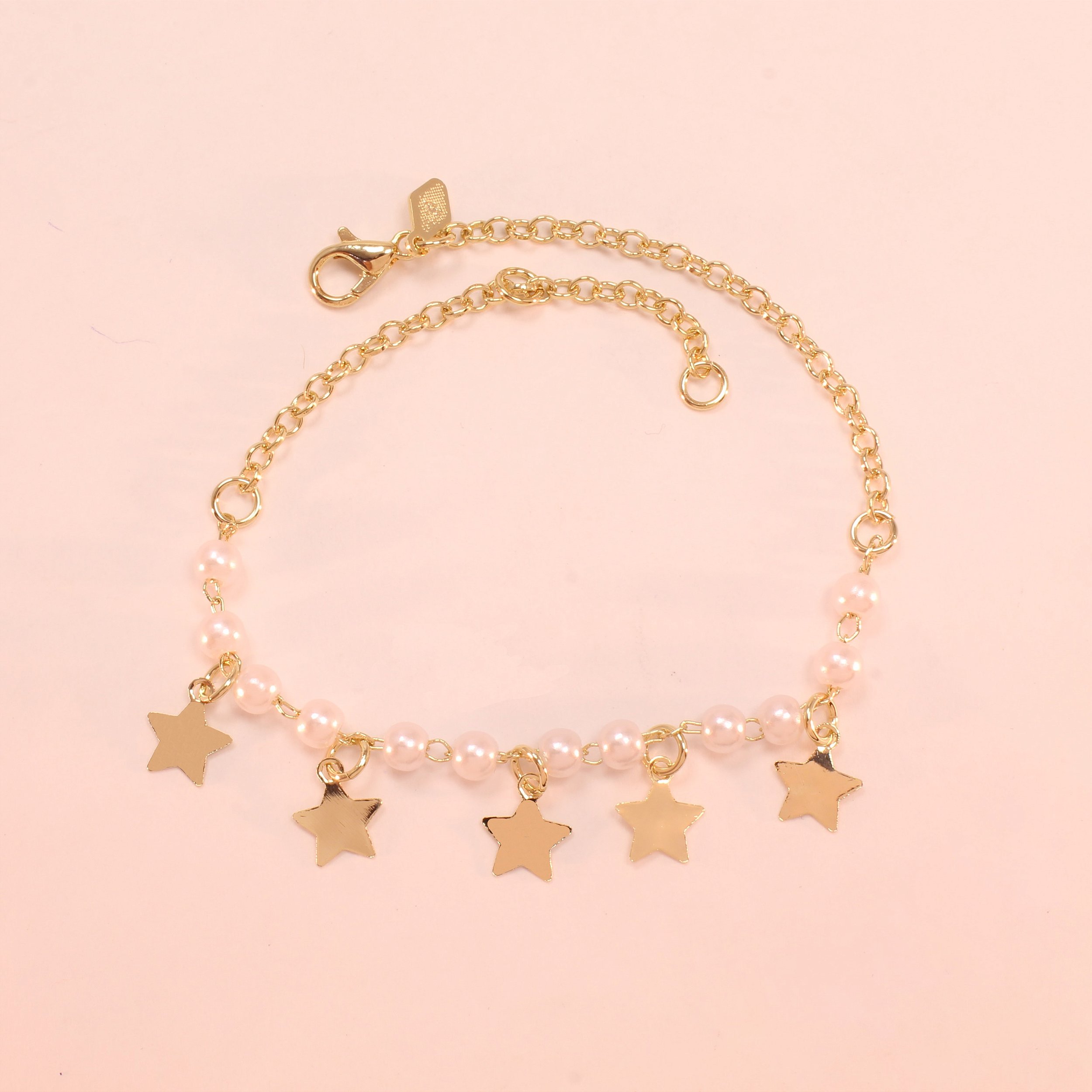Pulseira com Detalhes em Pérola e Estrelas Folheado a Ouro 18k