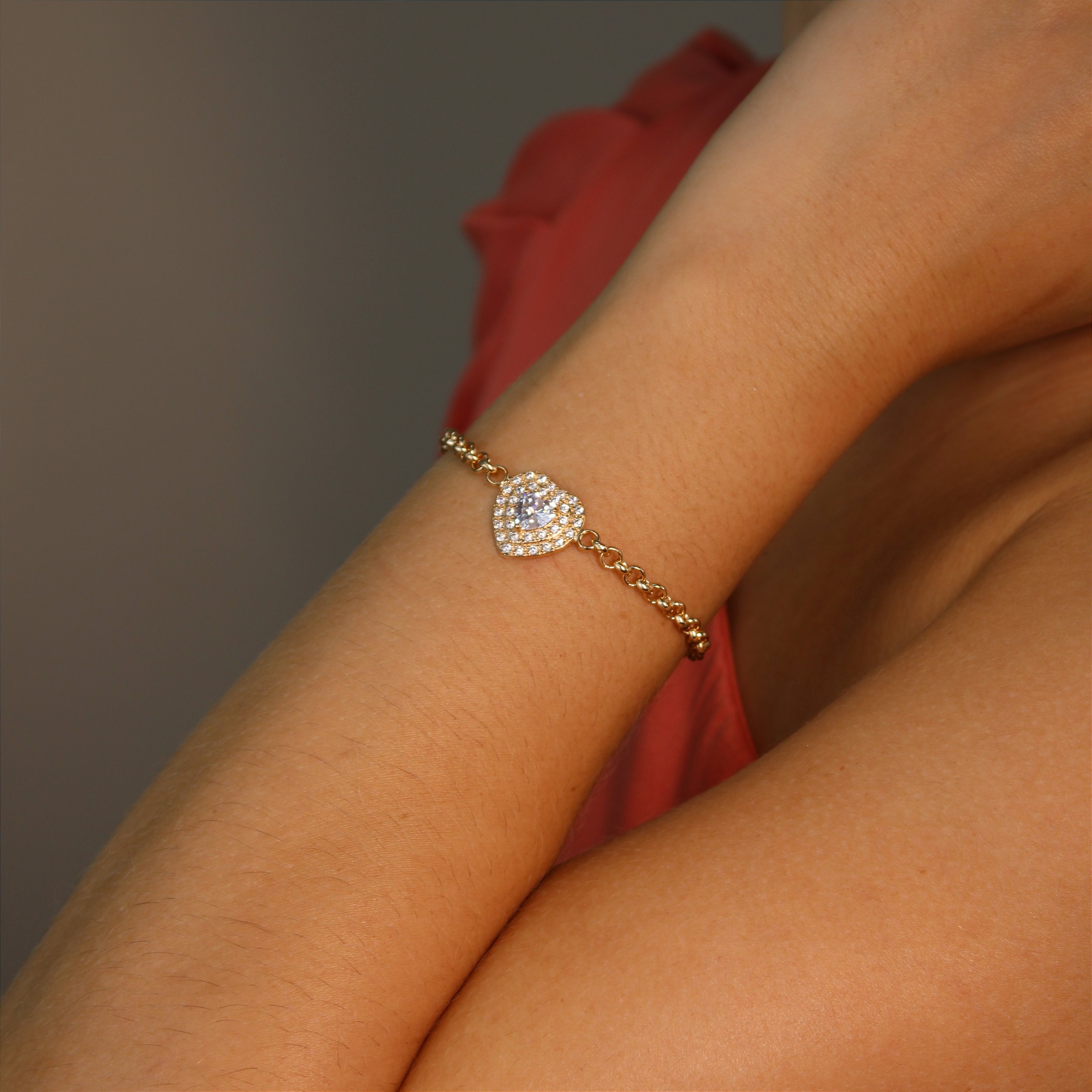 Pulseira de Coração Cravejado em Zircônia Cristal Banhado a Ouro 18k