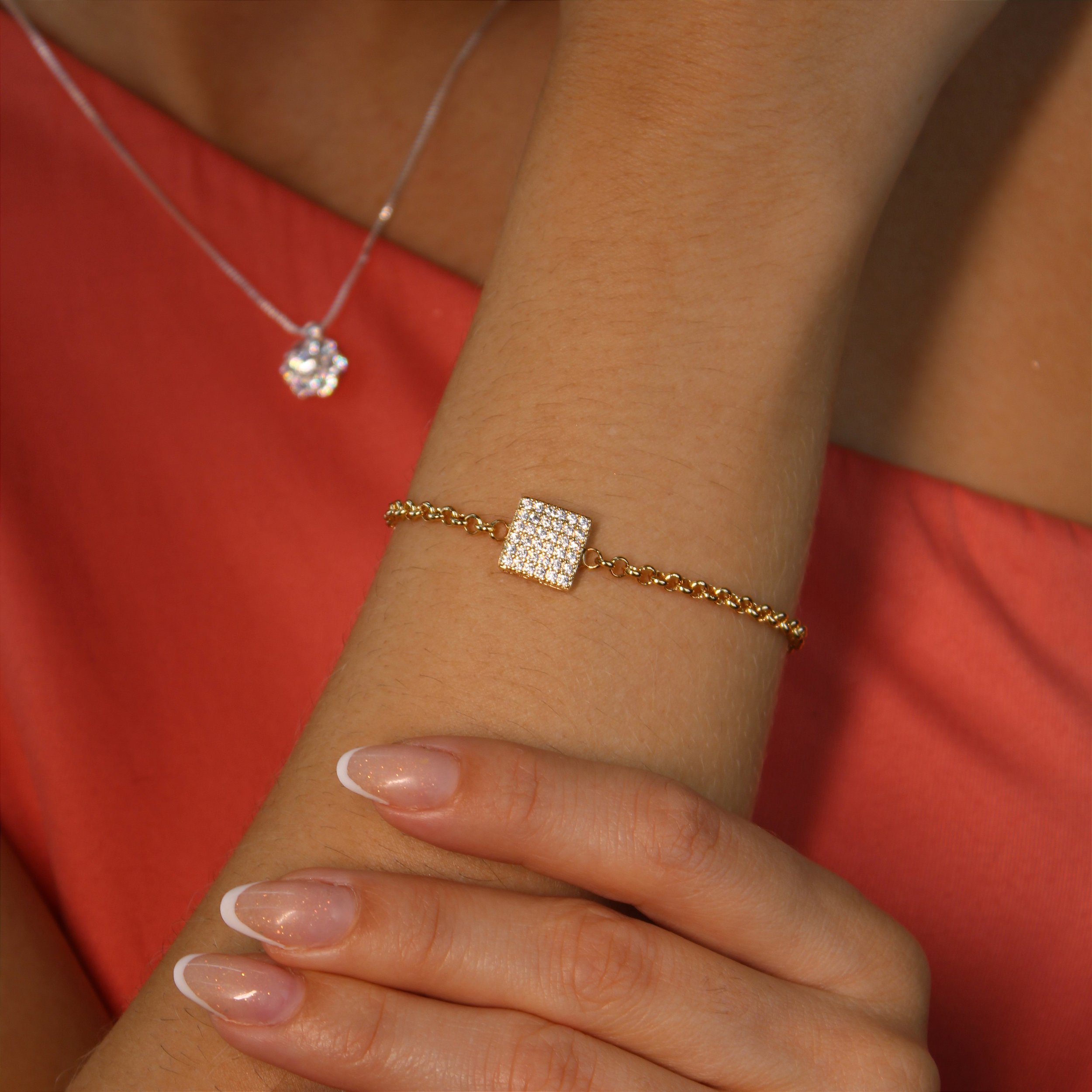 Pulseira com Pingente Cravejado em Zircônia Cristal Banhado a Ouro 18k