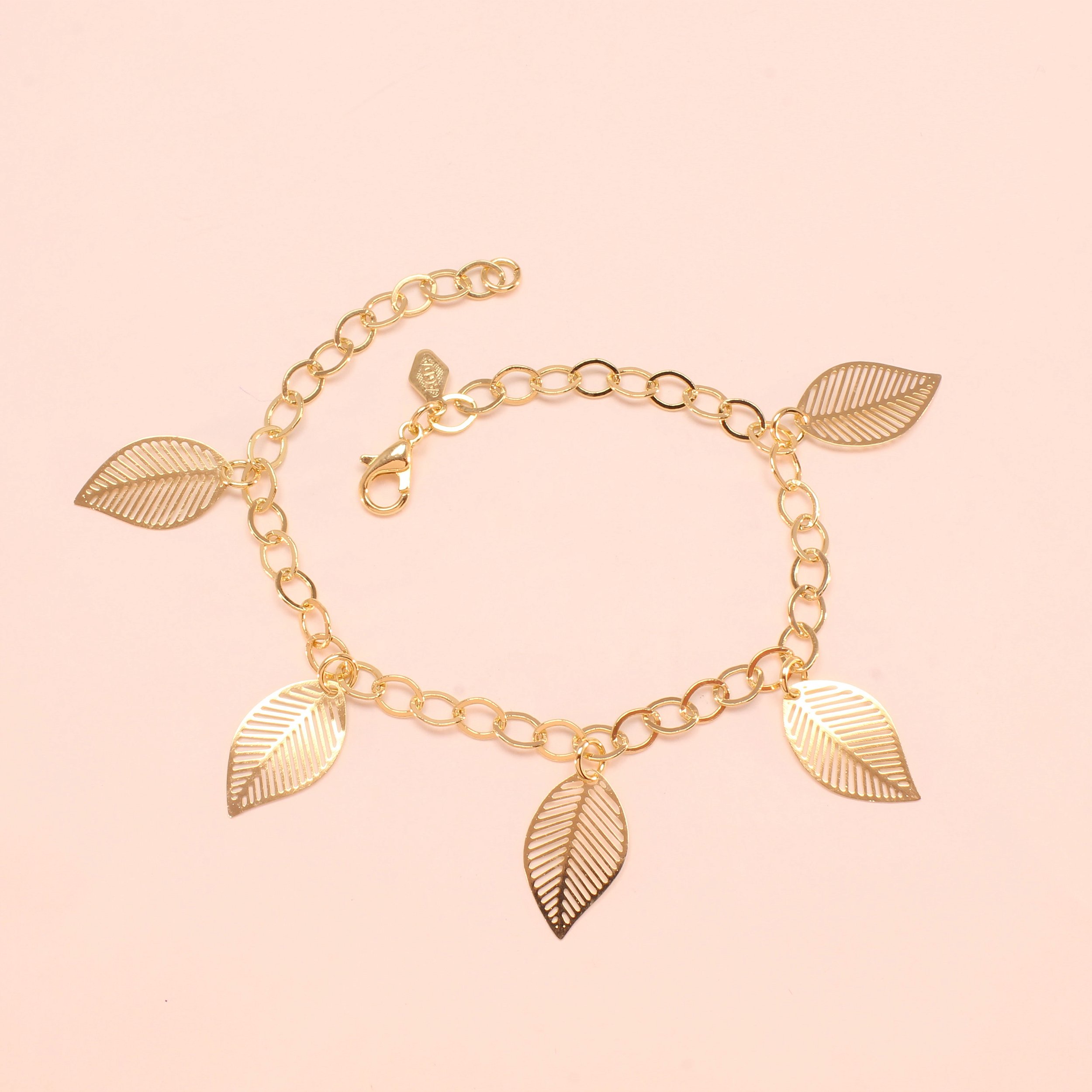 Pulseira com Pingentes de Folha Vazada Folheado a Ouro 18k