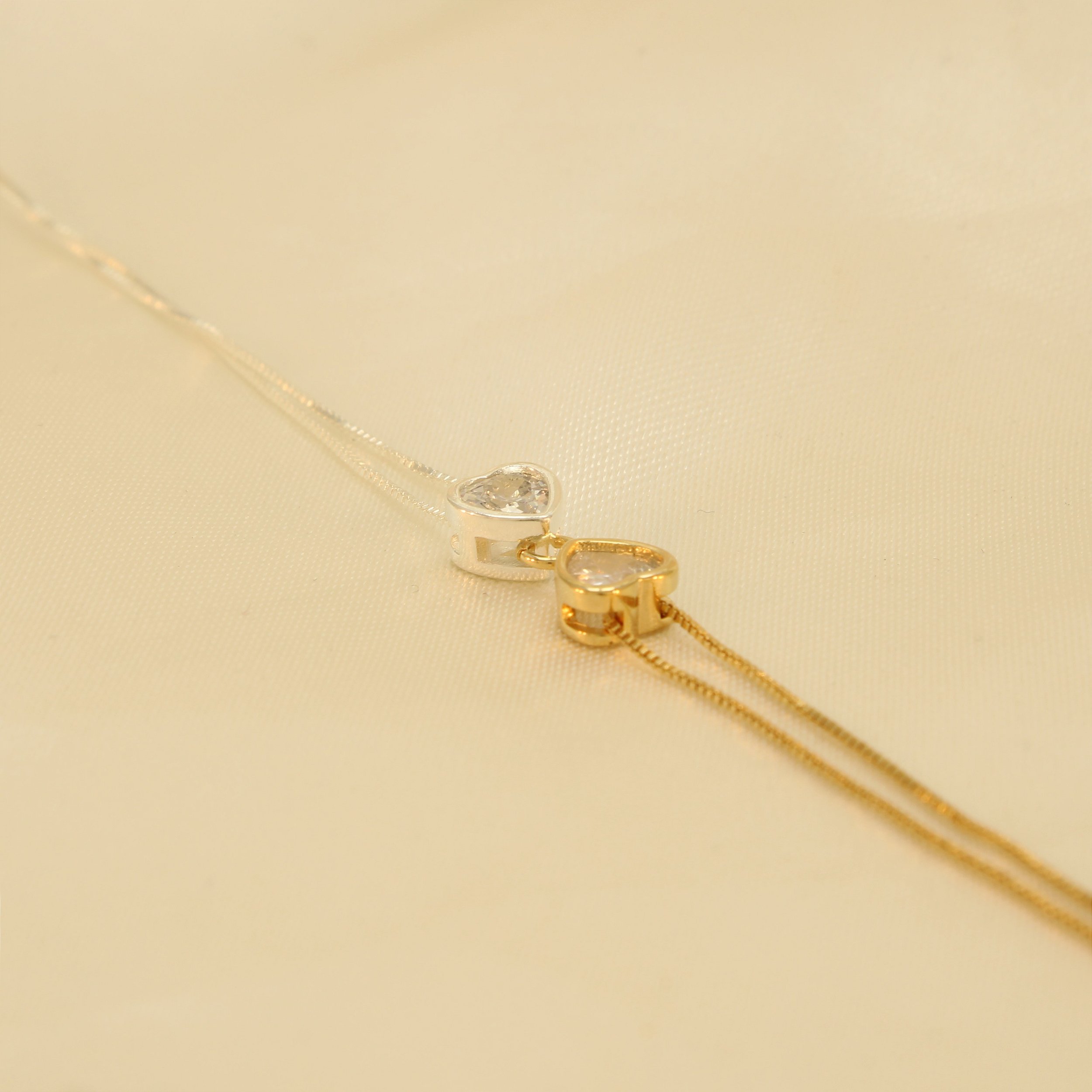Pulseira com Dois Corações Folheado a Prata e Ouro 18k