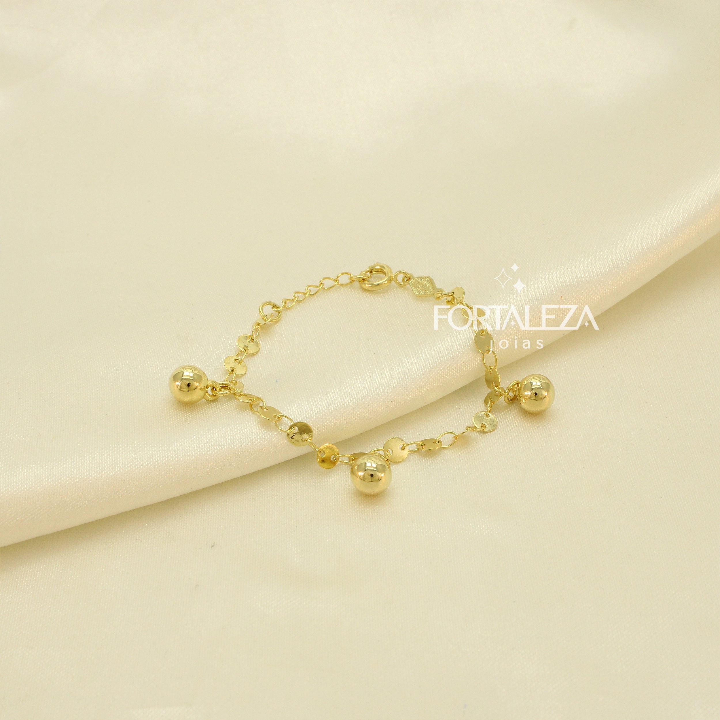 Pulseira com Pingentes de Bolinha Banhado a Ouro 18k