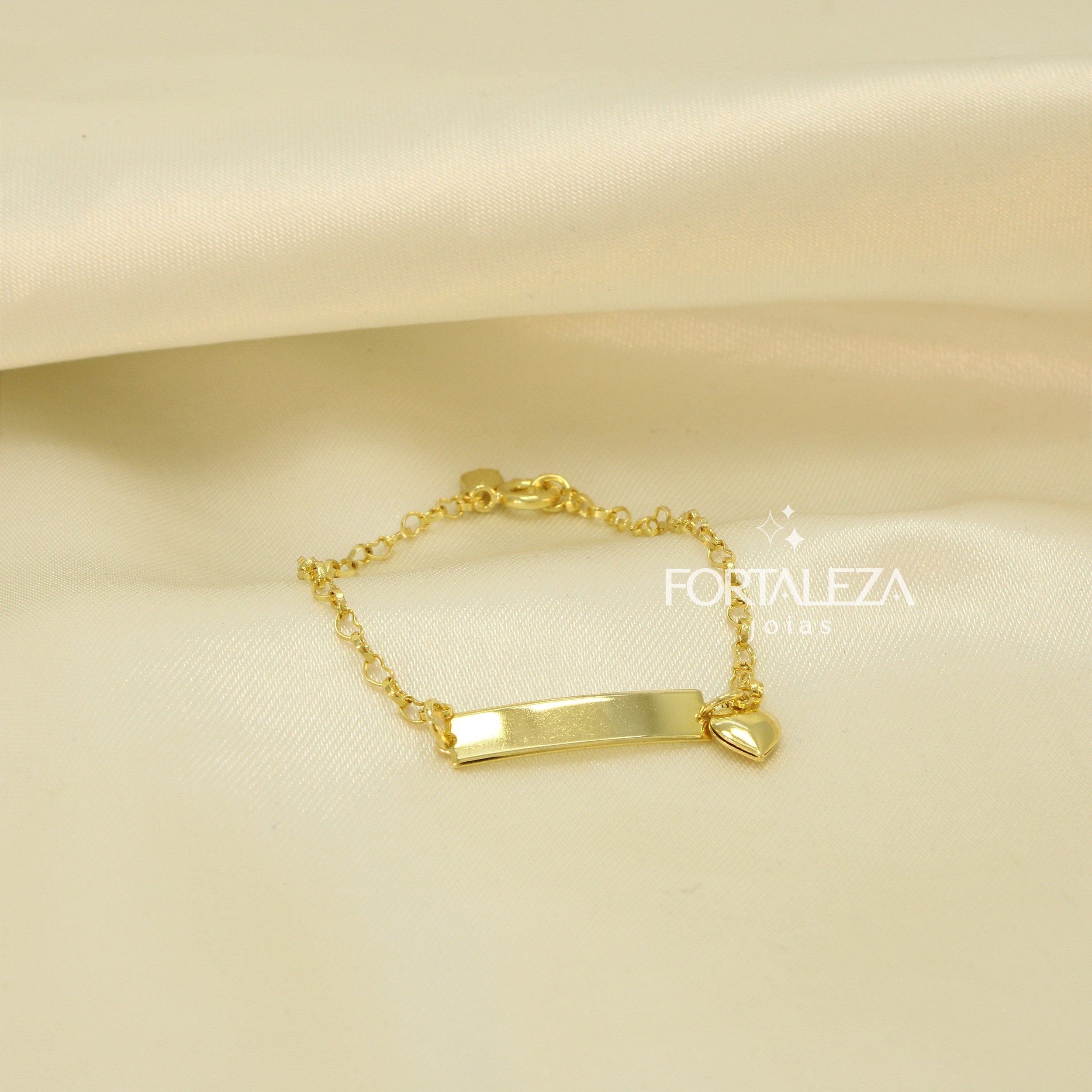 Pulseira com Plaquinha Lisa e Coração Banhado a Ouro 18k