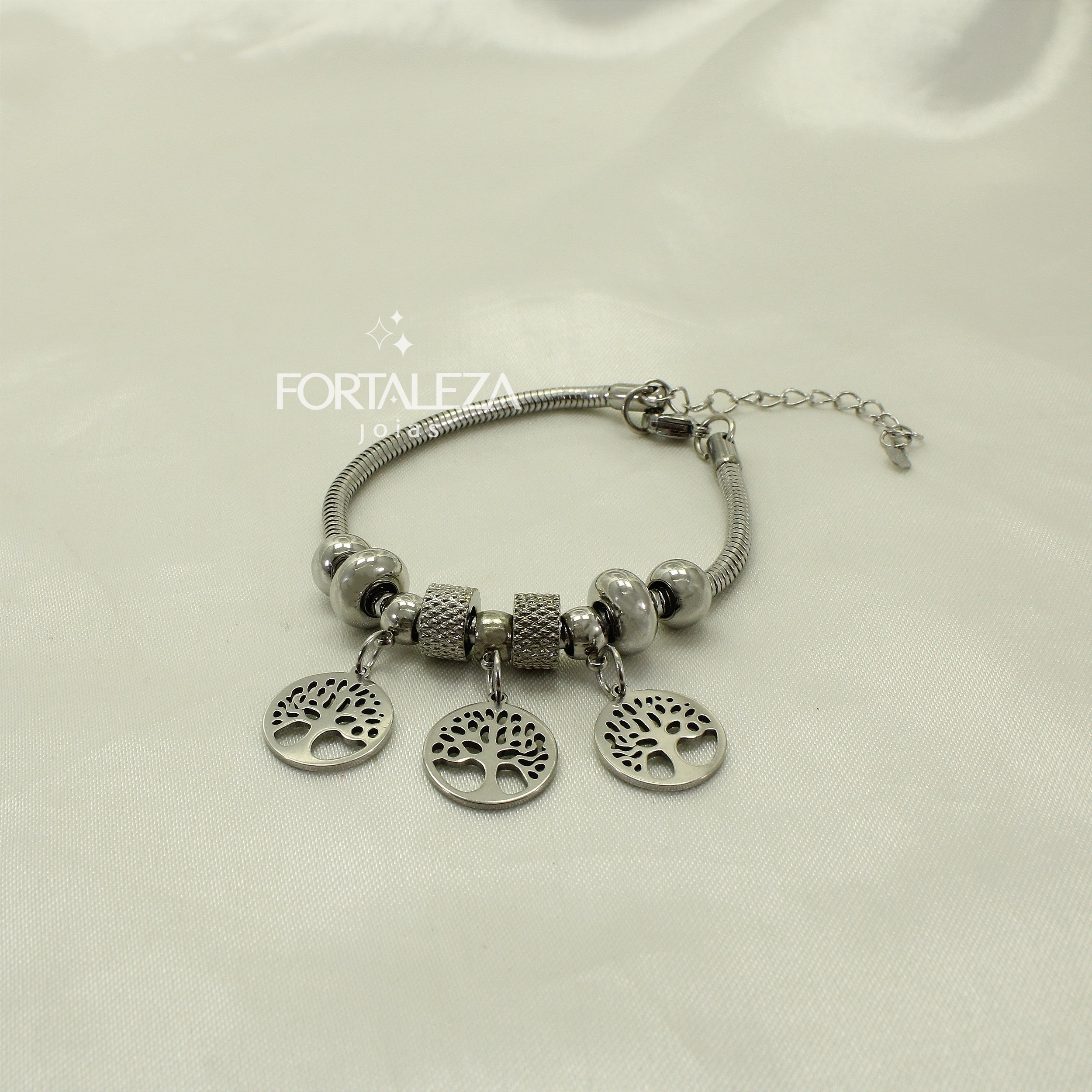 Pulseira com Berloques Árvore da Vida em Aço Inox