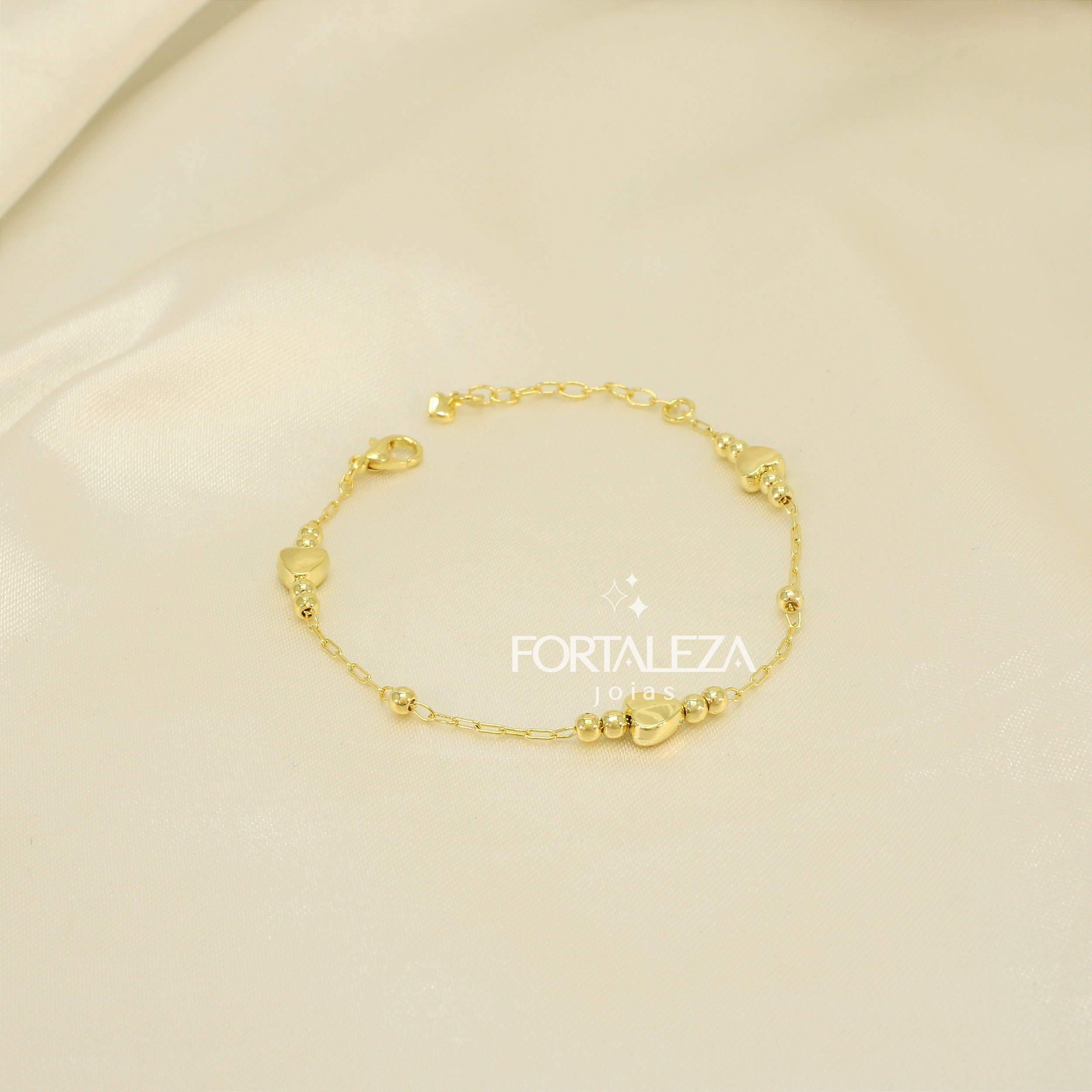 Pulseira com Coração de Zircônia Citrino Banhado a Ouro 18k