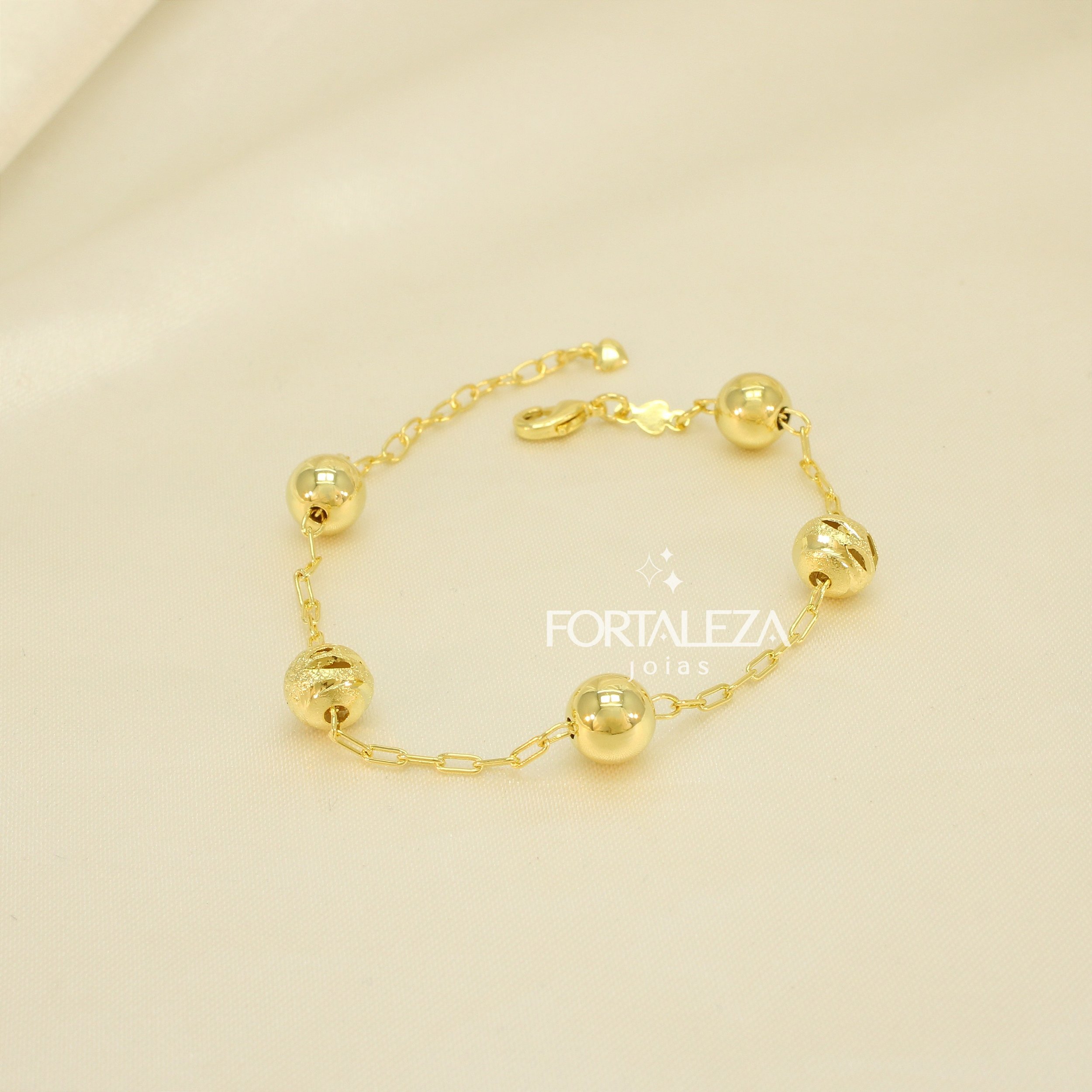 Pulseira Bolinha Polida e Granulada Banhado a Ouro 18k