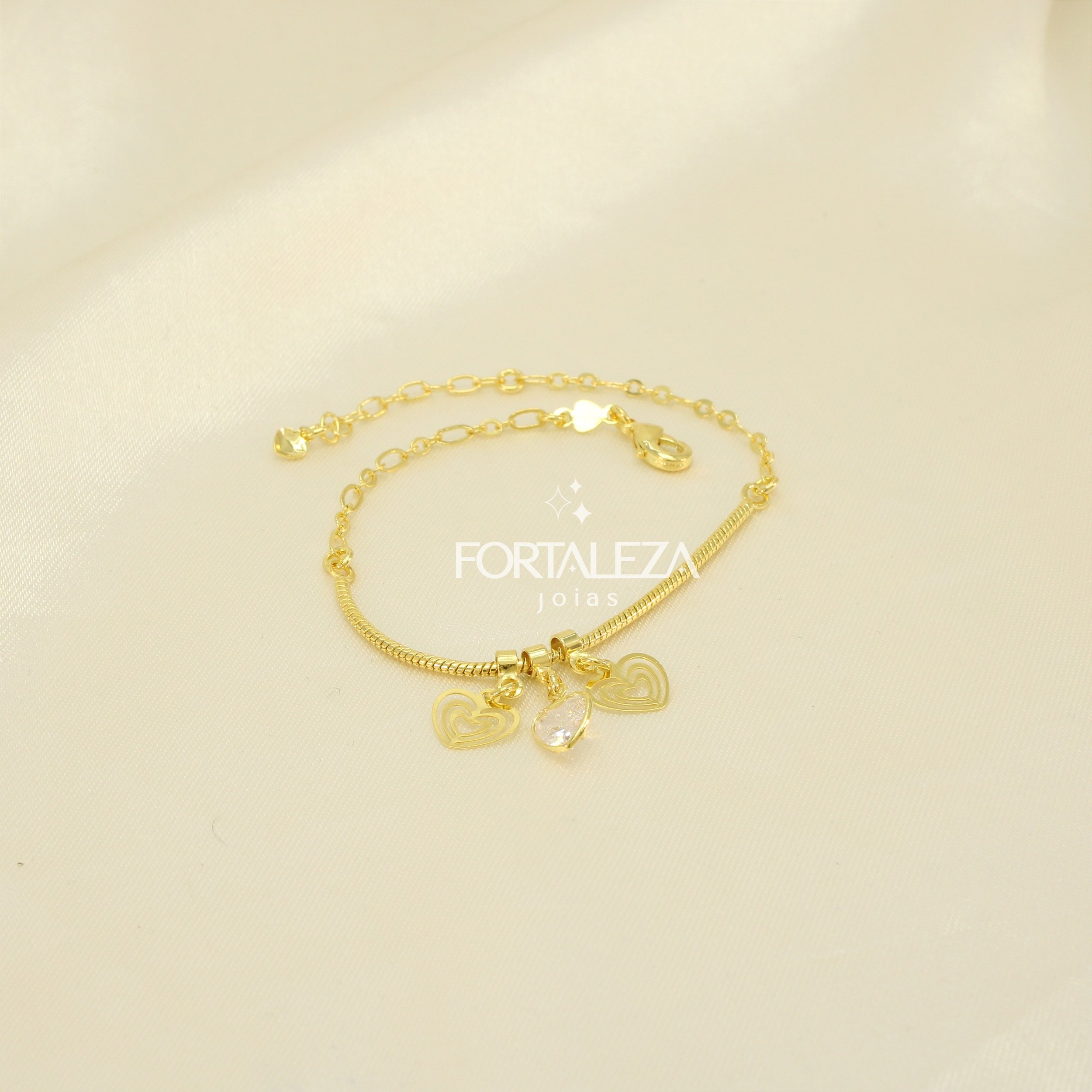 Pulseira com Coração de Zircônia Citrino Banhado a Ouro 18k