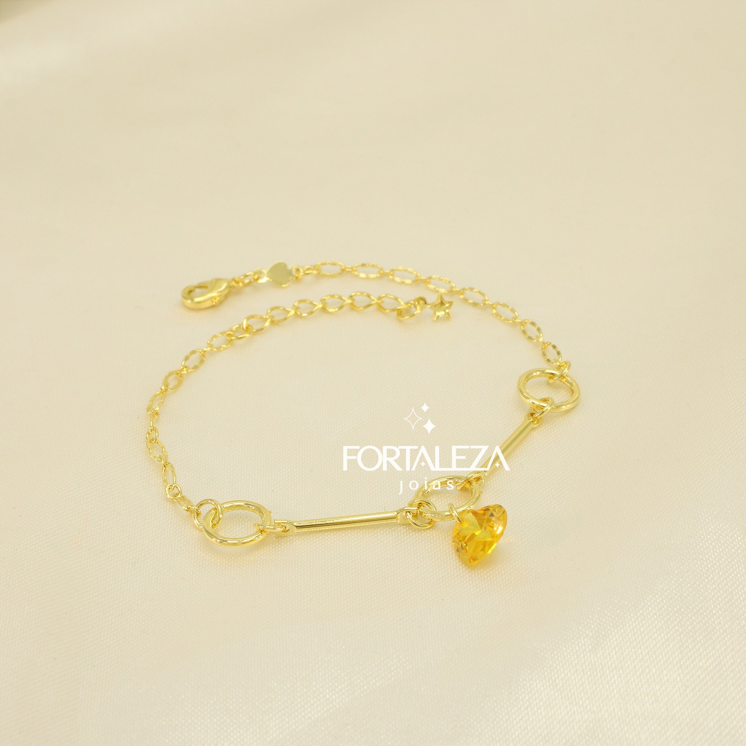 Pulseira com Coração de Zircônia Citrino Banhado a Ouro 18k