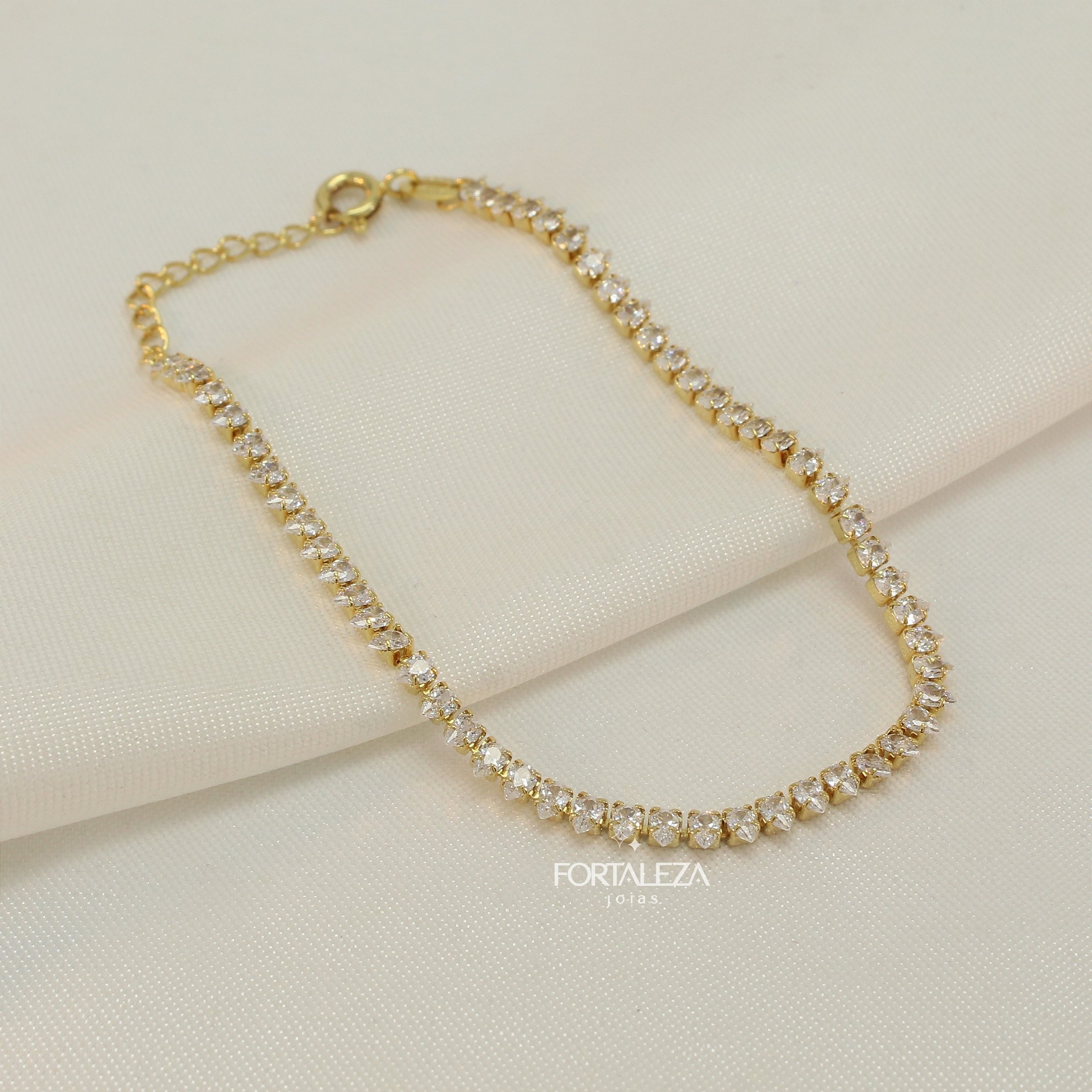 Pulseira Cravejada em Gotas de Zircônia Cristal Banhado a Ouro 18k