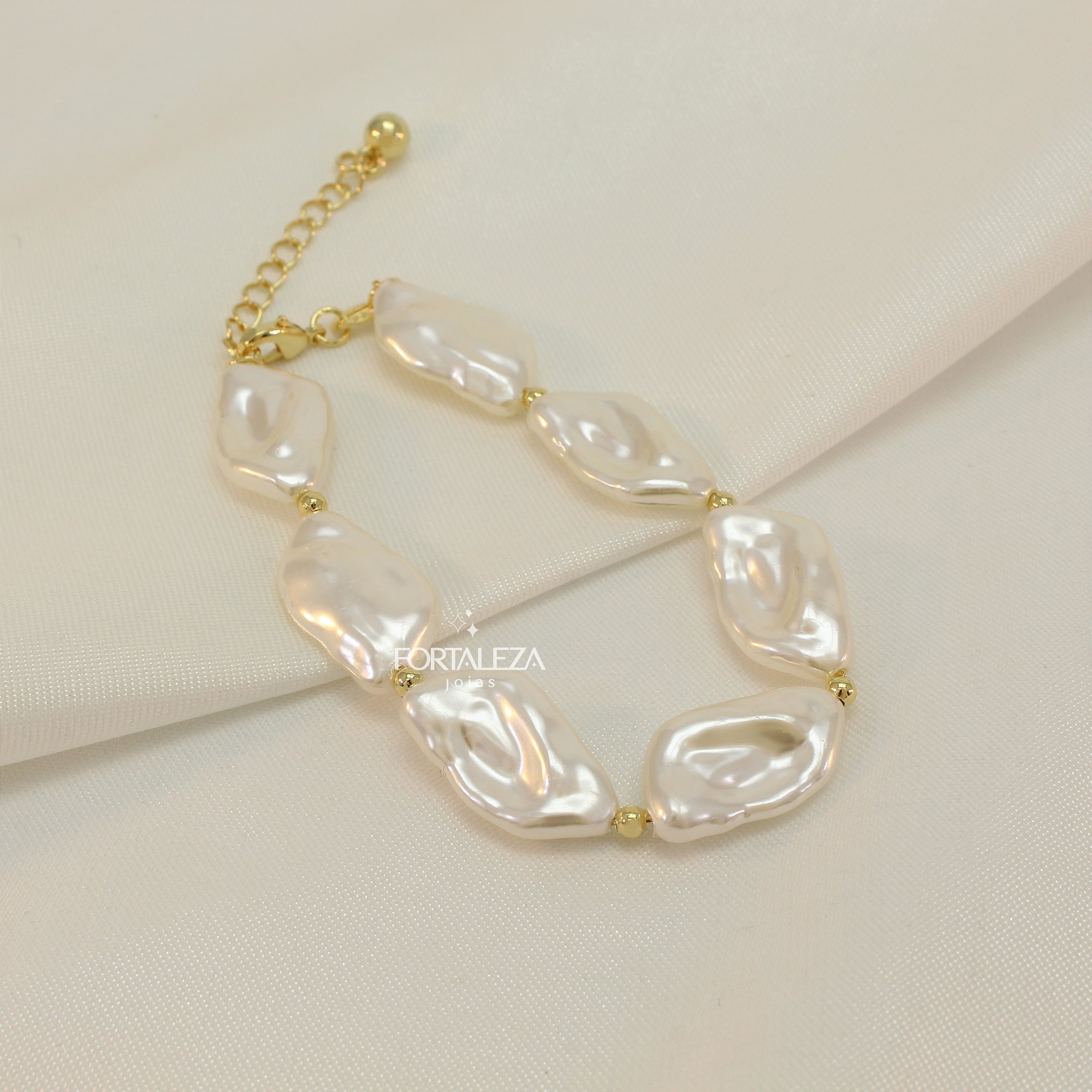 Pulseira de Pérola Barroca Banhado a Ouro 18k