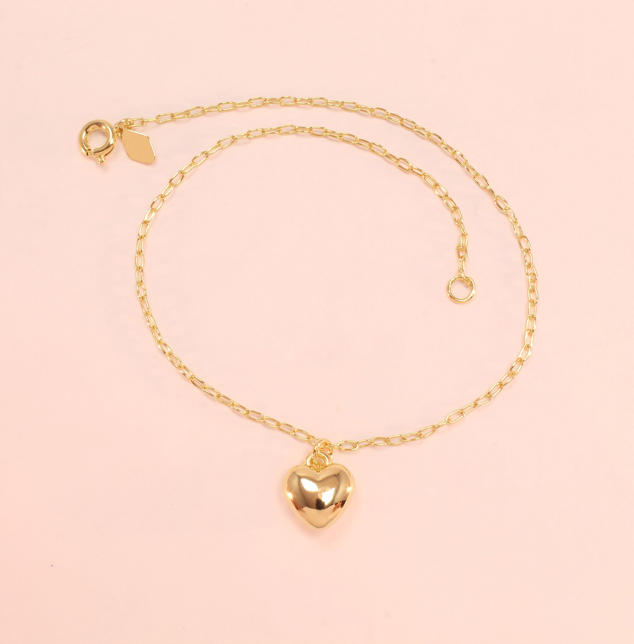 Tornozeleira com Coração Polido Folheado a Ouro 18k
